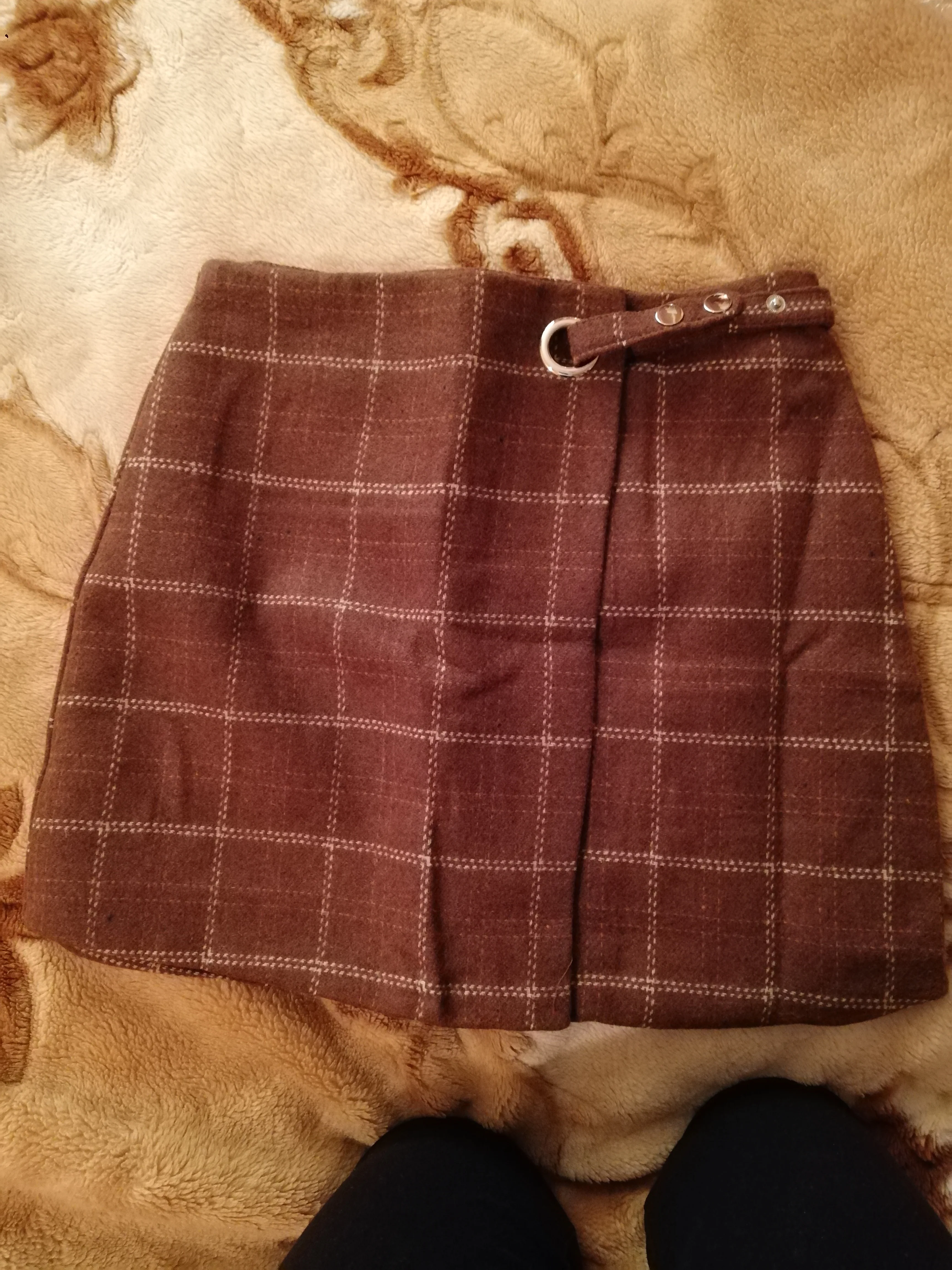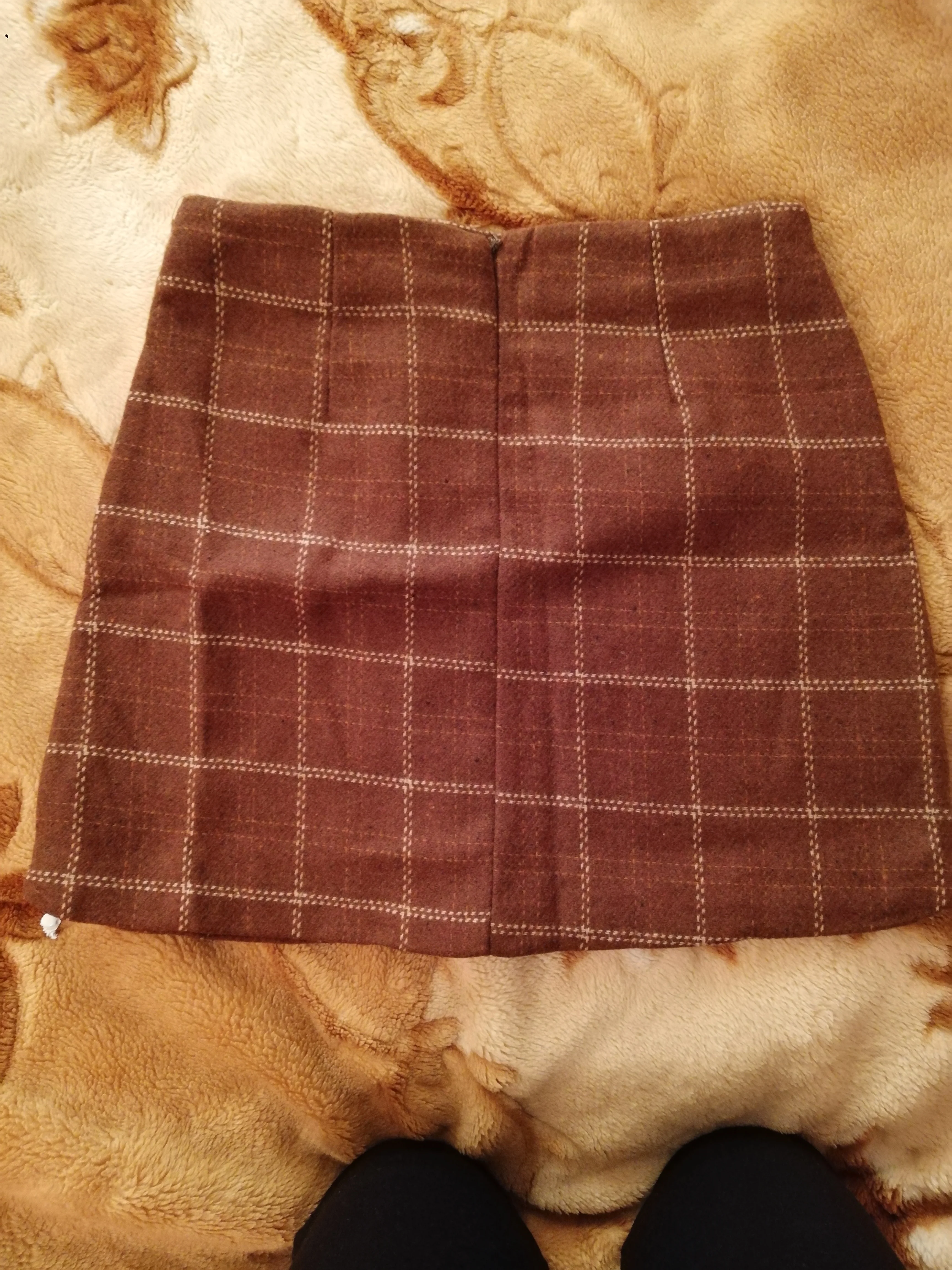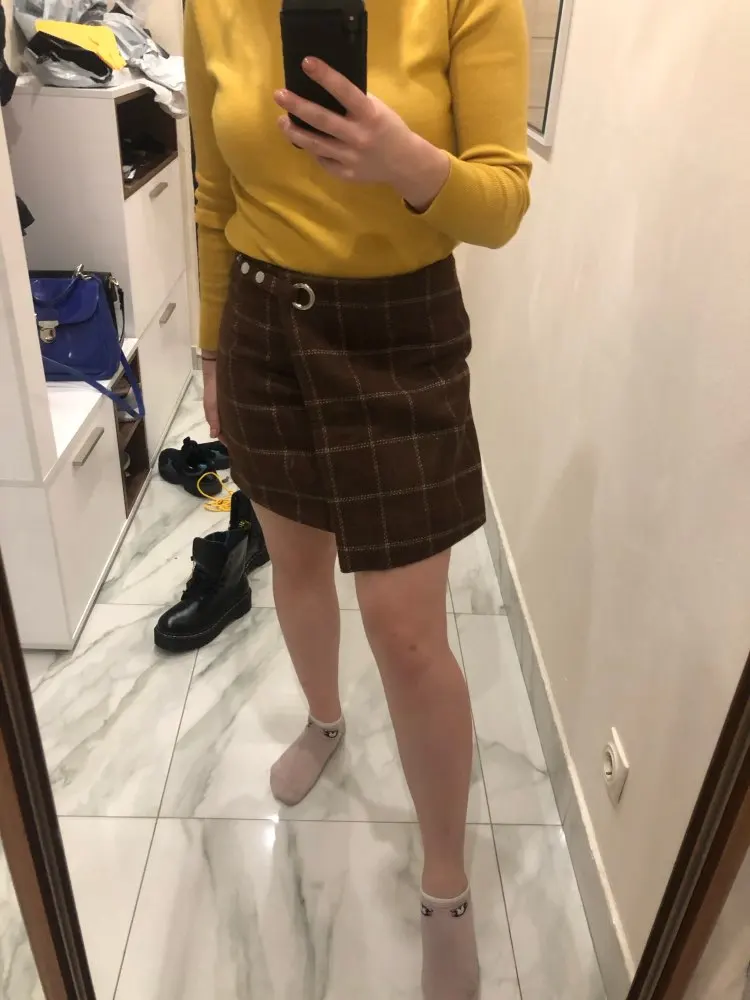 Тёплая, мягкая и классная юбка. Размер в размер. Писали, что рисунок клетки где-то не сходится. У себя такого не обнаружила. Ставлю класс.