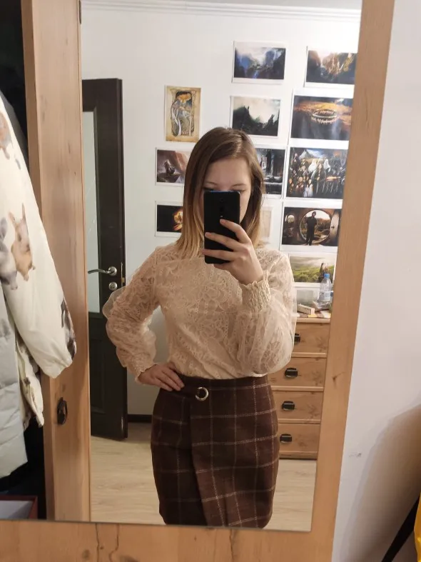 Юбка сама по себе красивая и тонкая, но размер M любой Xs... У меня есть 164 см, и я стройная, и эта юбка с ягодицами XD