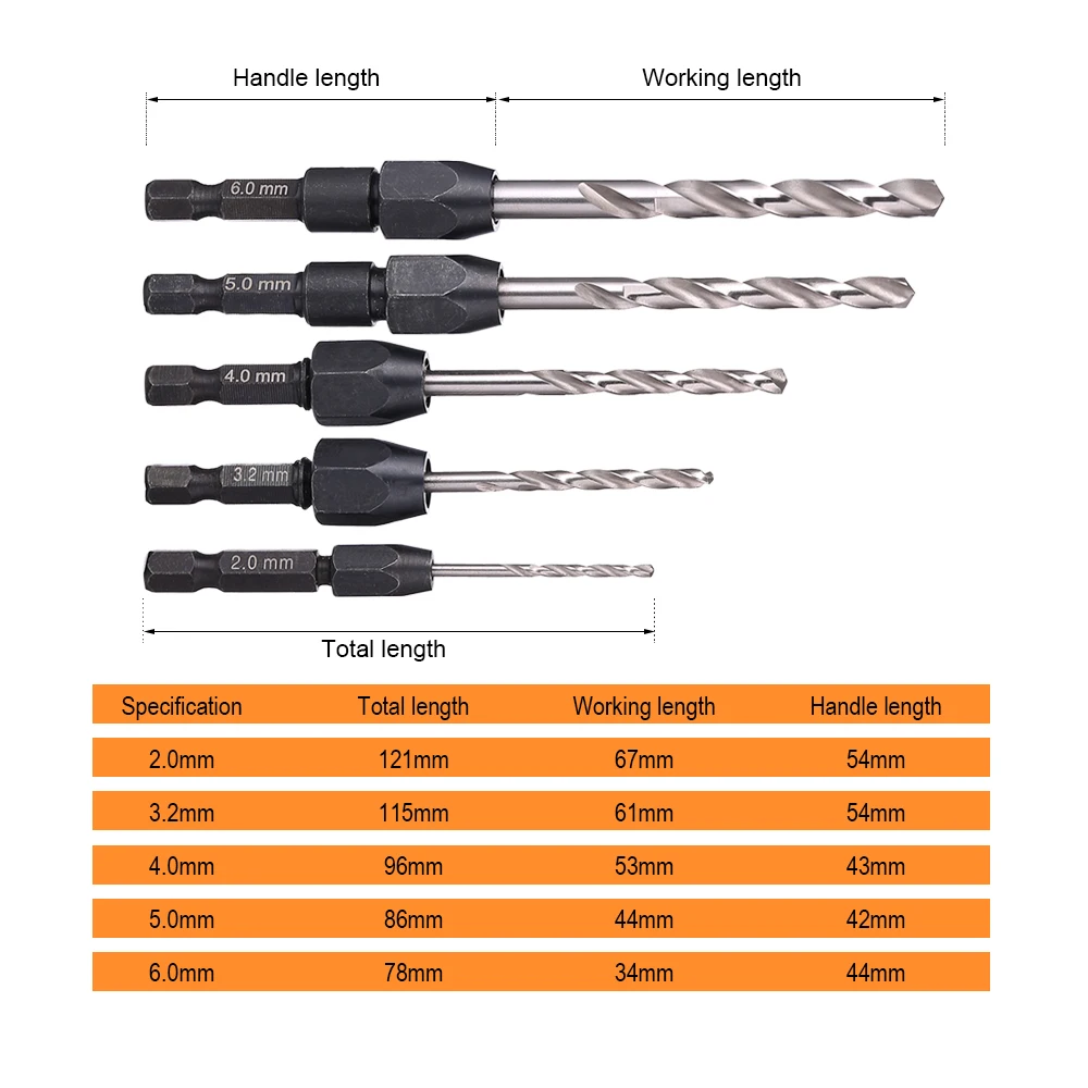 JelBo 5 шт. сверло с шестигранным хвостовиком с шестигранным отверстием, высокоскоростные стальные сверла с закручивающимся винтом, набор сверл для деревообработки