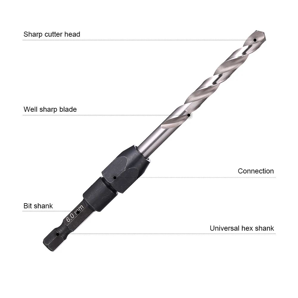 Материал: черная шестиугольная ручка из углеродистой стали, белая буровая часть из 6542 высокоскоростной стали (M2)