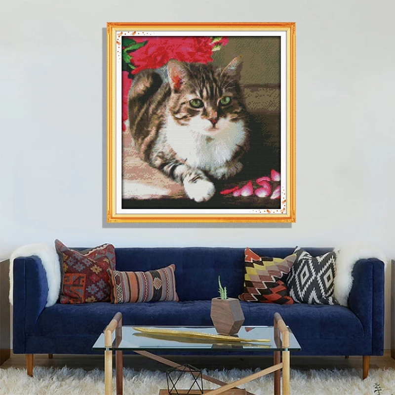 Прекрасный кот, китайский Счетный крест, узор, картина, рукоделие, 11CT, 14CT, напечатан на холсте, DMC, ткань для вышивки крестом, Набор для творчества