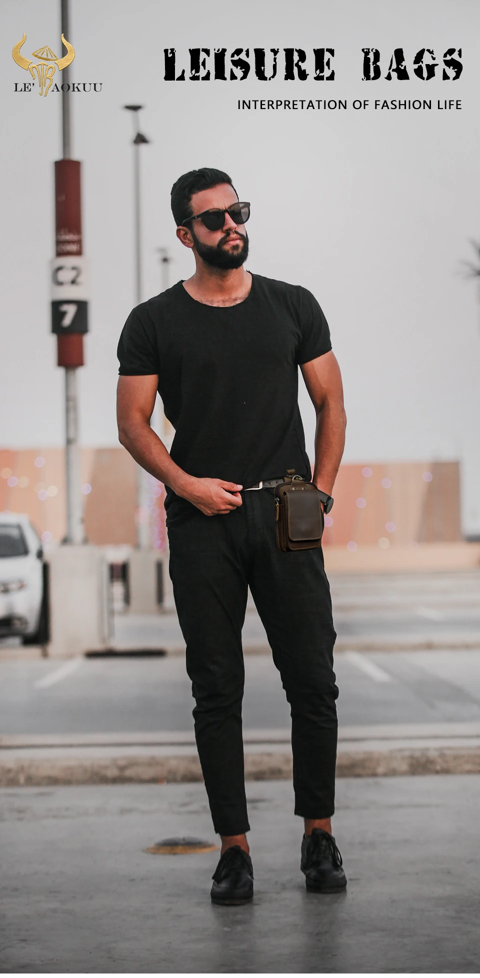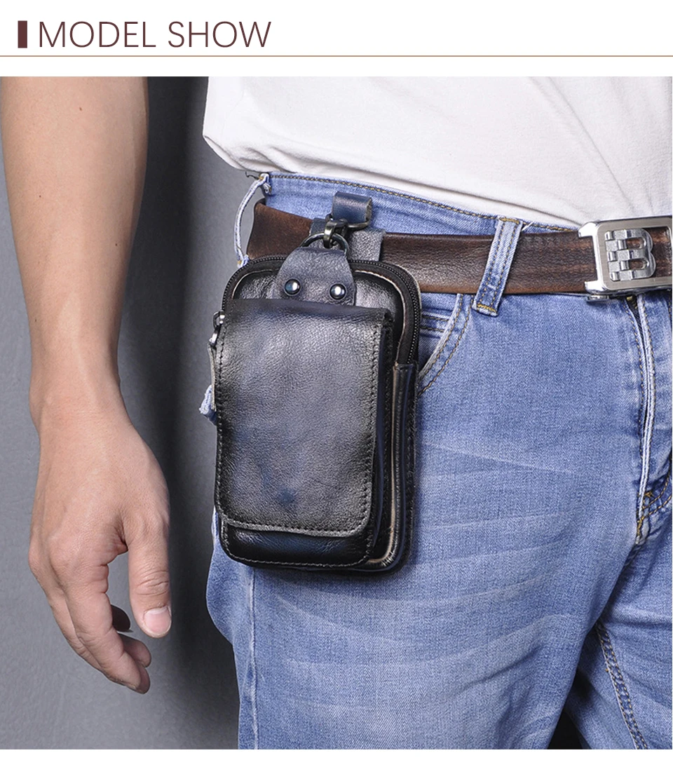 Повседневная дизайнерская маленькая поясная сумка из натуральной воловьей кожи для мужчин, модная сумка-кошелек с крючком, поясной кошелек, чехол для сигареты, чехол для телефона 5,5 дюйма, 1609