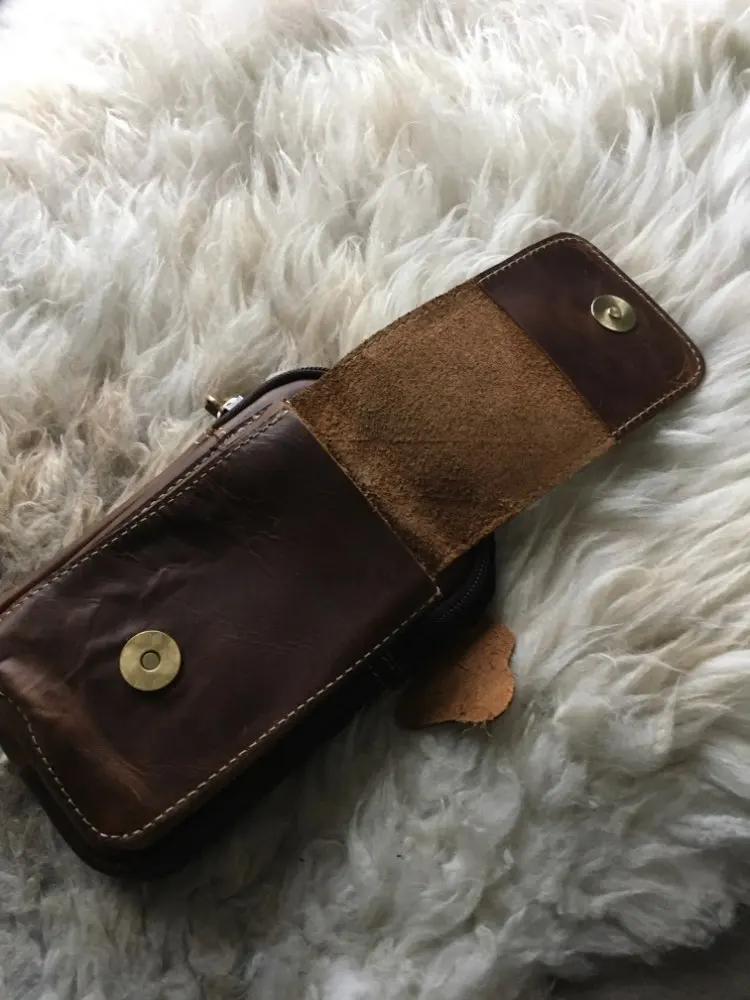 Качественная мягкая кожа, хорошая цена, p.s. по размерам - мой galaxy note9 в обрезиненном чехле только-только застёгивается в кармане.