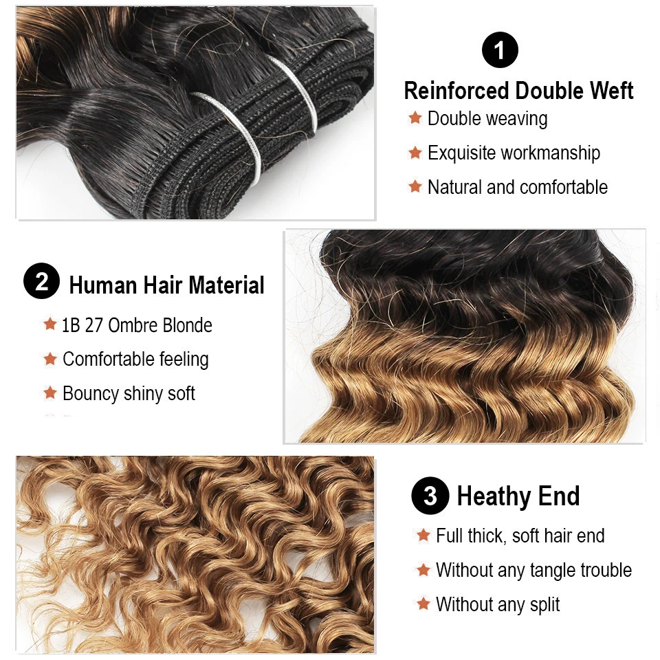 1 комплект волнистых человеческих волос Remy, наращивание волос 10-26 дюймов 1B 27, эффект Омбре, медовая блондинка, предварительно окрашенные, темно-коричневые, Bobbi коллекция
