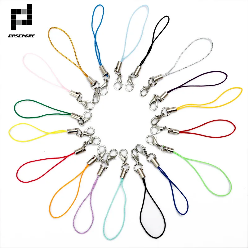 50 шт., многоцветная застежка Лобстер (12 мм), шнур для шнурка (5 см), нейлоновые брелоки для мобильных телефонов, цепочка для ключей сделай сам