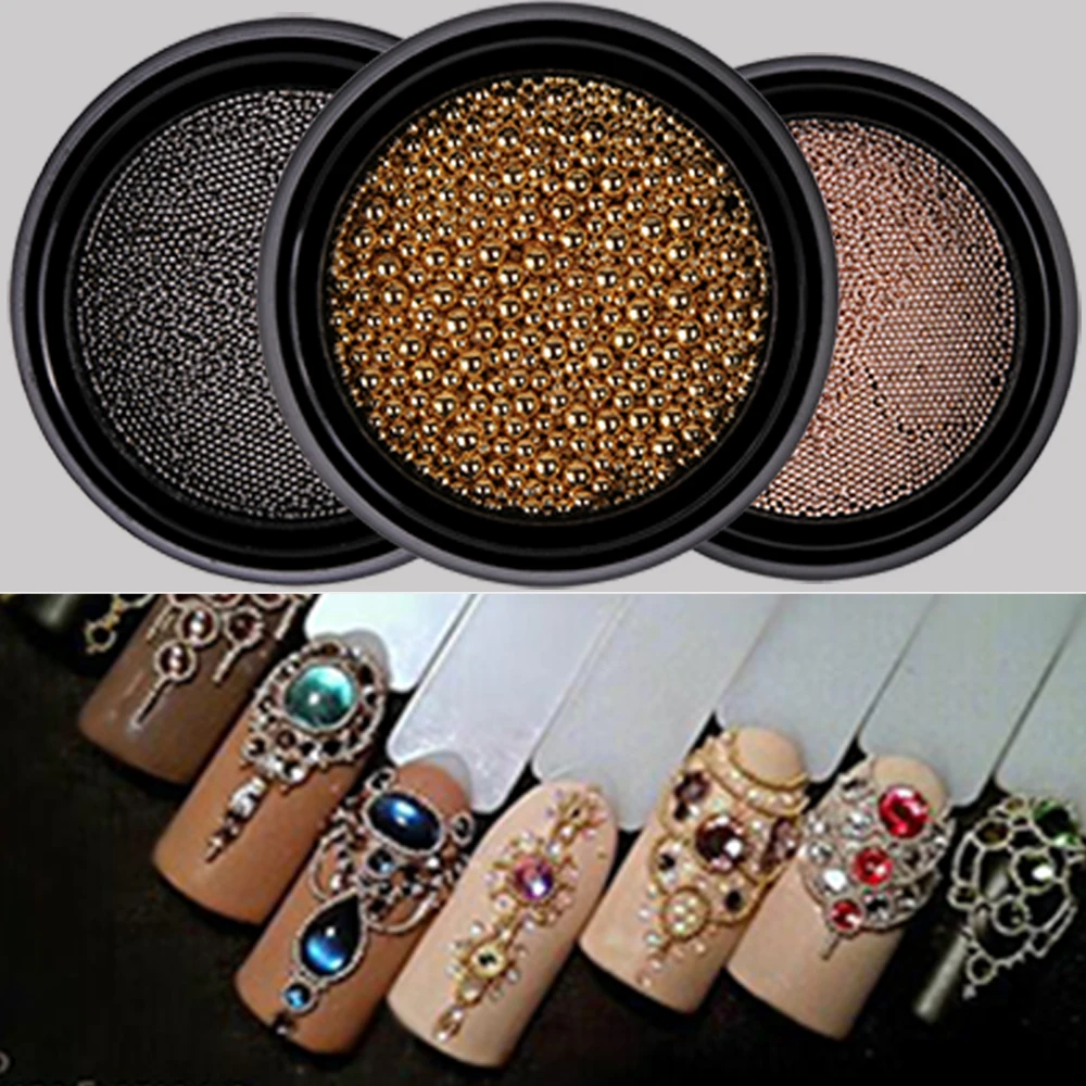 Миниатюрные Стальные Бусины в форме икры, 1 бутылочка, 0,4 мм0,6 мм, 3D украшения для ногтей, золотые, серебряные, серые шпильки, аксессуары для дизайна ногтей, стразы, TR026