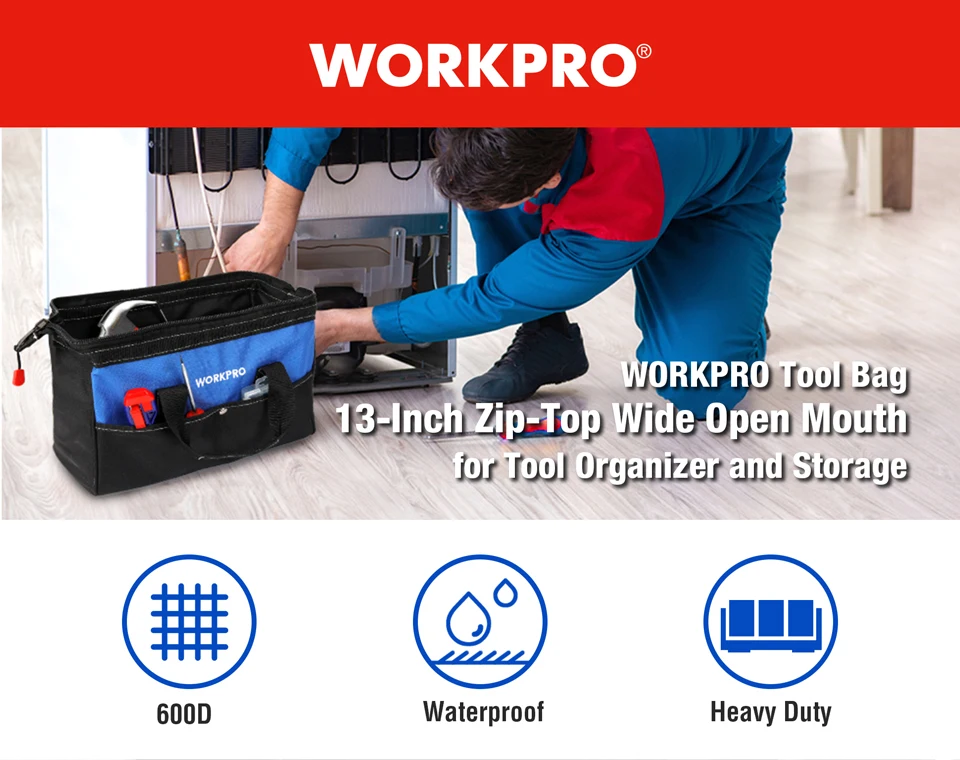 Сумка для хранения WORKPRO 13 дюймов с закрытым верхом и широким ртом, водонепроницаемый мешок для инструментов из 600D полиэстера, дорожные сумки через плечо для мужчин, 2018