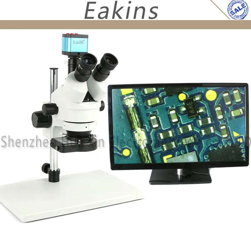 Тринокулярный микроскоп 7X-45X, стерео микроскоп с зумом для проверки, 21 МП, камера с разъемом HDMI и USB C-образным креплением + кольцевой светодиодный светильник 144 + Адаптер C