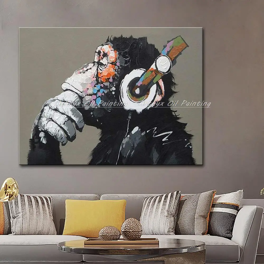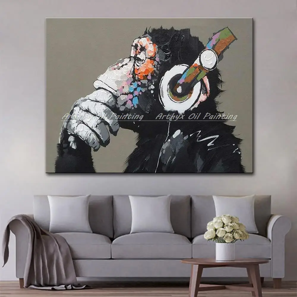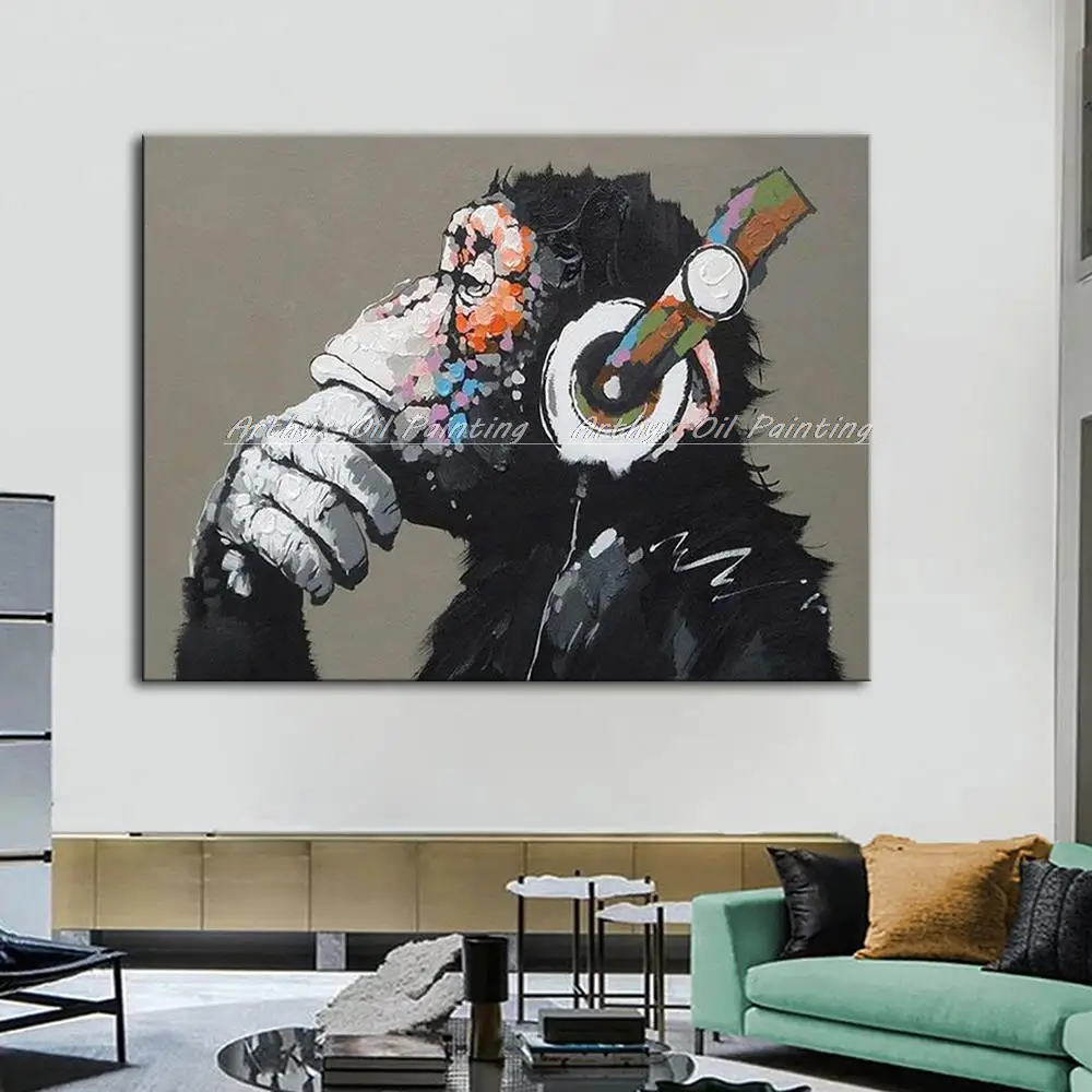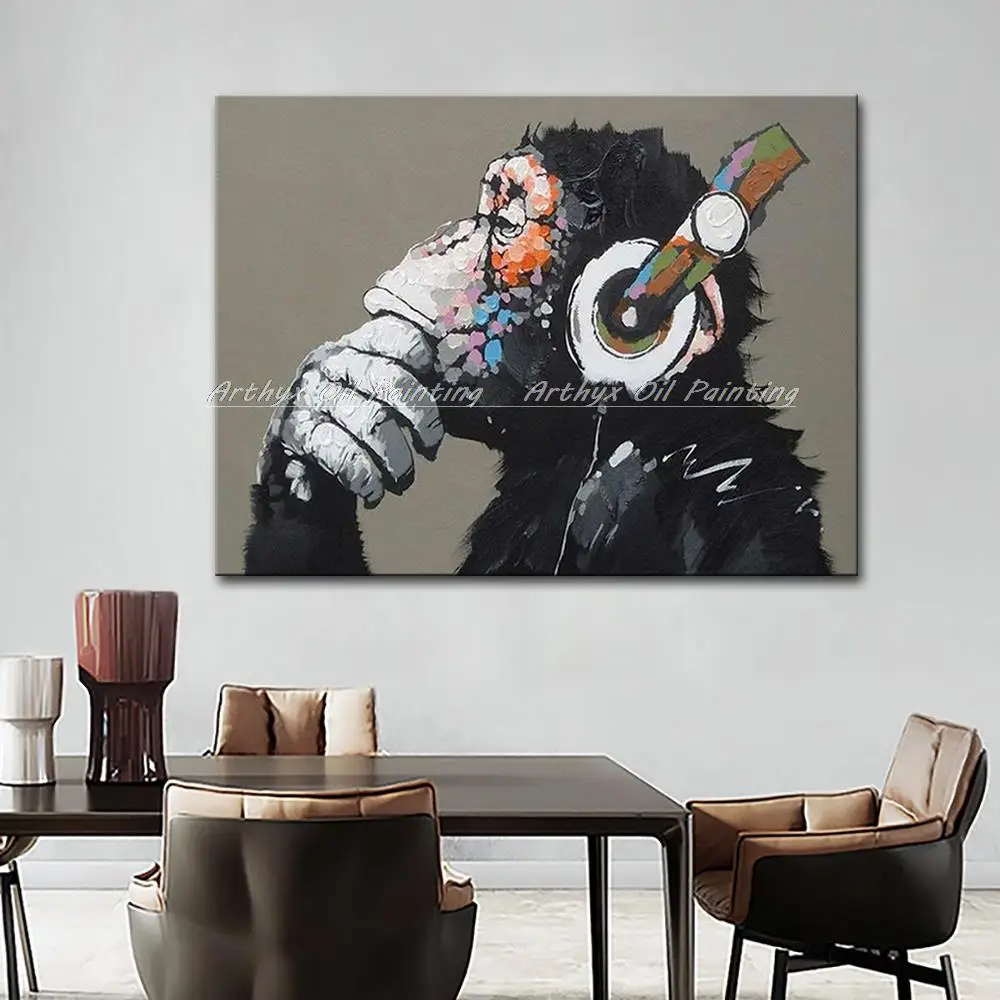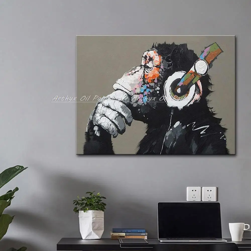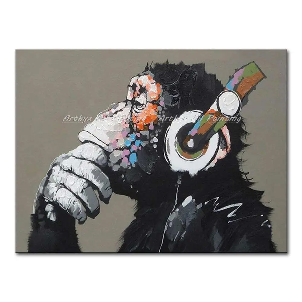 Arthyx поп-арт ручная работа музыка Обезьяна картина маслом на холсте Современные абстрактные фотографии животных на стену для детской комнаты украшение дома.