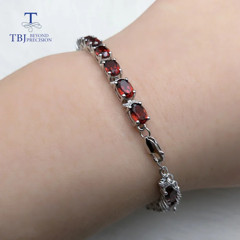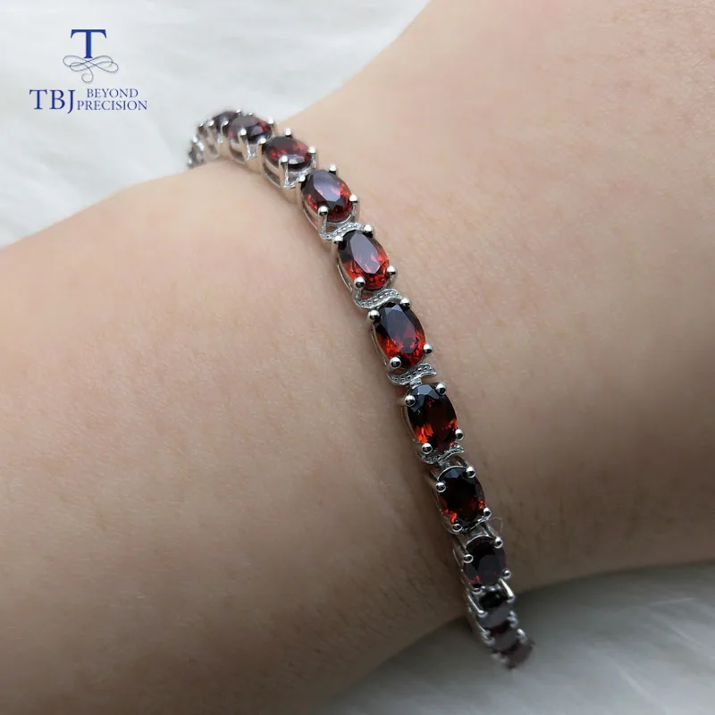 Элегантный браслет TBJ с натуральным гранатом из серебра 925 пробы, Изящные Ювелирные украшения на годовщину свадьвечерние лучший подарок для женщин