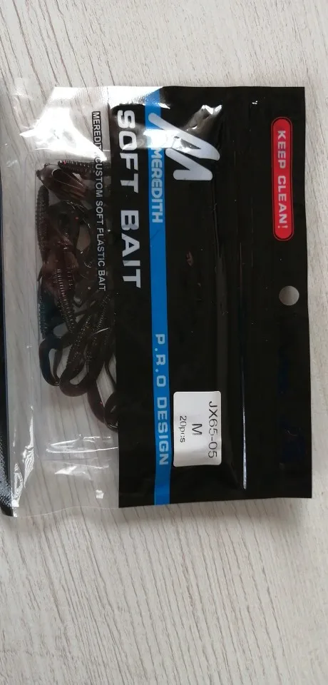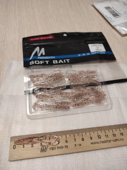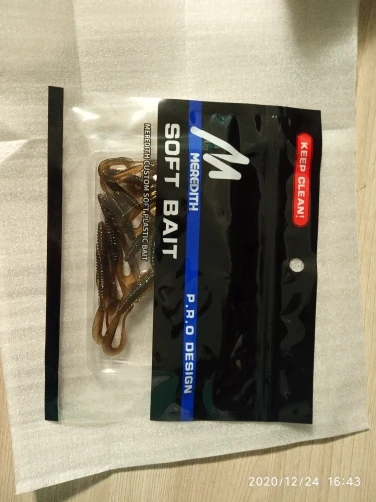 Доставка 24 дня .Пришло в сборной посылке Заказывал 5 см , 0,6 гр получил Диаметр тела 6 мм , длина тела 30 мм, длина хвоста 70 мм . Материал прочный , эластичный , с небольшим запахом . ловит хорошо окуня . Рекомендую
