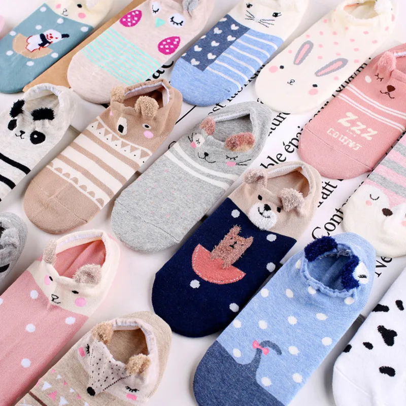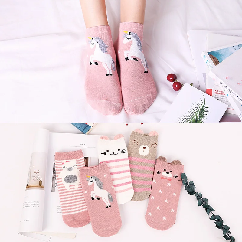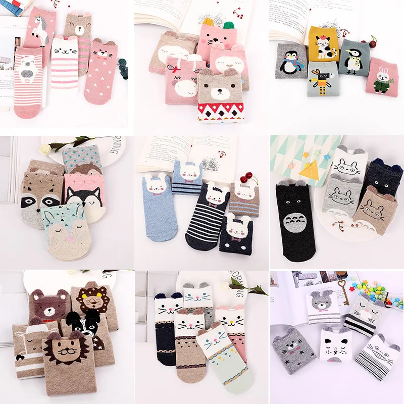 Носки женские хлопковые до щиколотки, теплые дышащие, с 3D рисунком животных, 5 пар