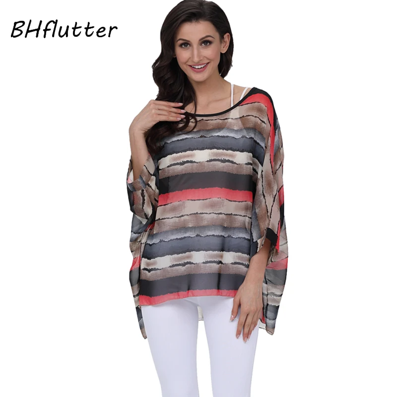 BHflutter новый стиль 2018 женские блузки размера плюс летучая мышь цветочный принт летние топы тройники Женская Повседневная шифоновая блузка рубашка Blusas