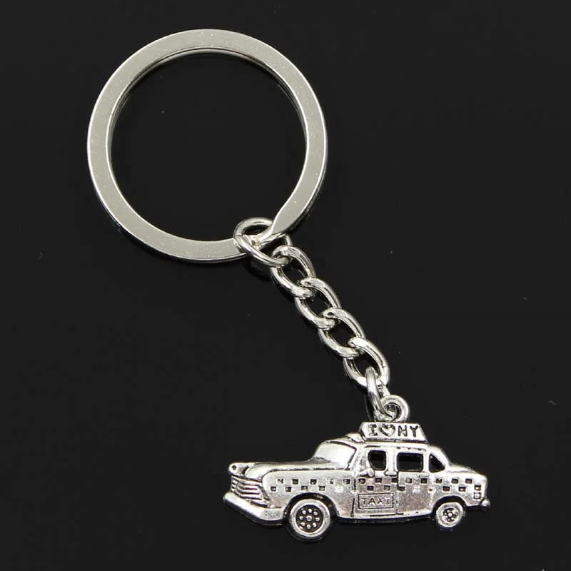 Новинка, модный мужской брелок 30 мм, металлический держатель сделай сам, цепочка, винтажная, Нью-Йорк, такси, автомобиль 18x32 мм, серебристый цвет, кулон, подарок