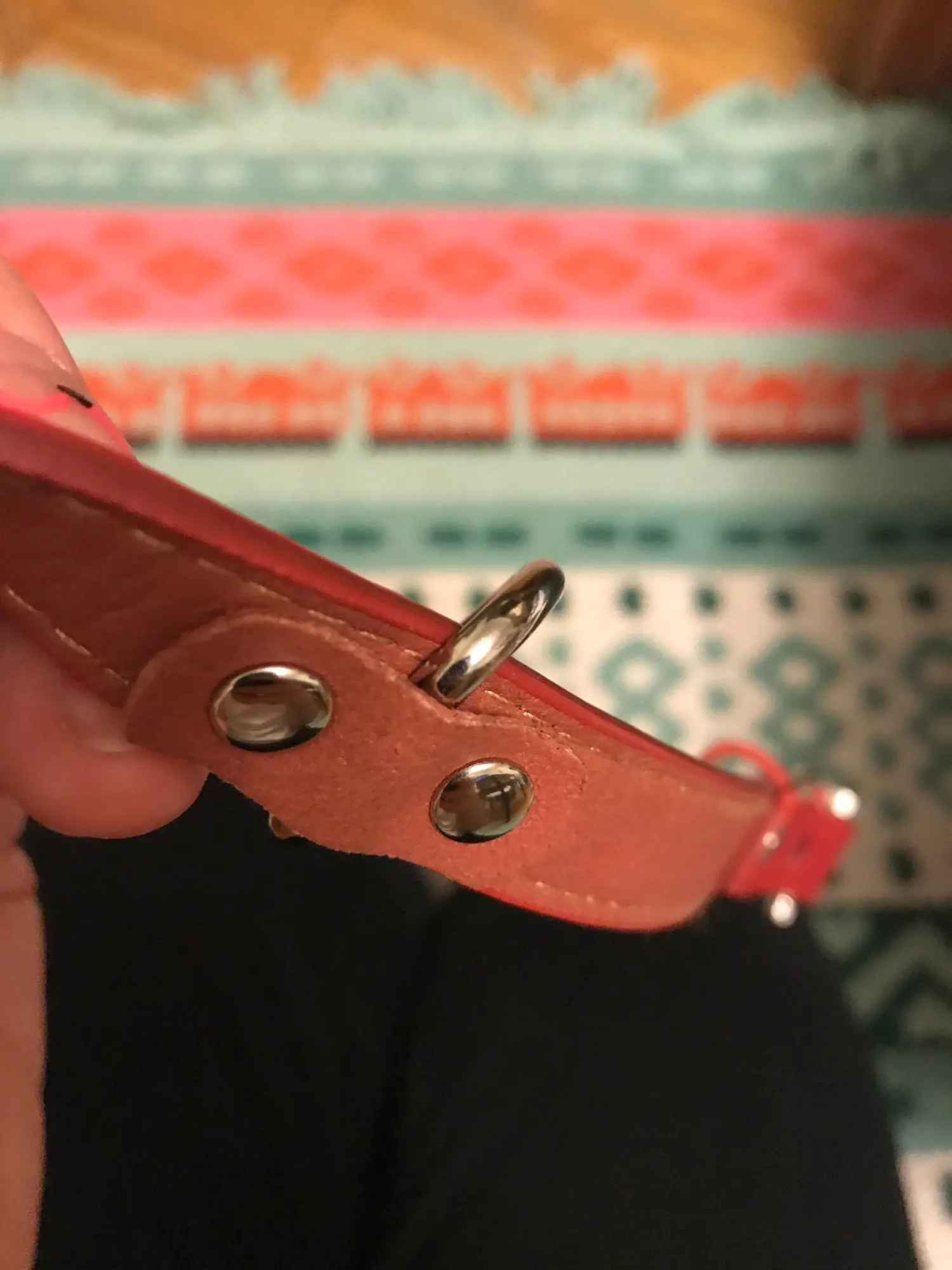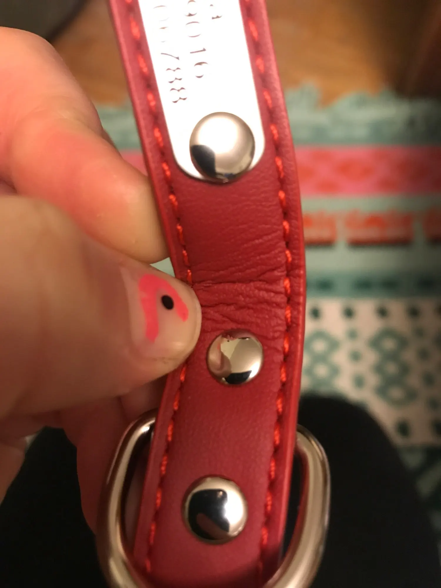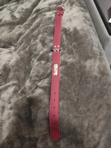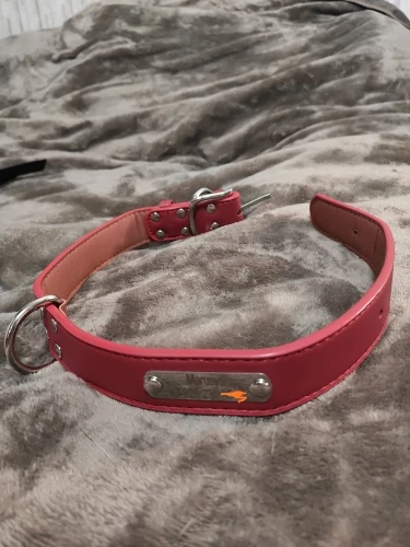 Ошейник хлипенький, хорошую собаку не выдержит, дешевый кожзам. Но красивый. надпись сделана красиво, ошейник глаз радует.