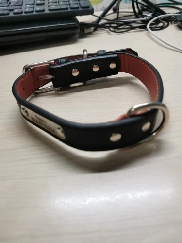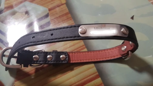 Хороший ошейник, выглядит солидно, табличка с кличкой собаки и номером телефона хозяина смотрятся изящно. Спасибо продавцу.