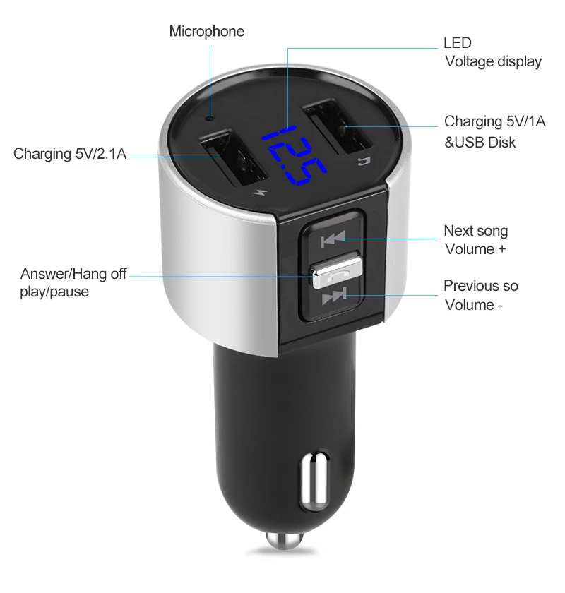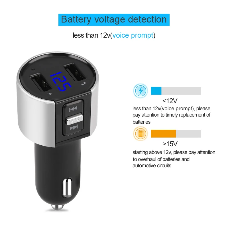 Наш автомобильный fm-передатчик может воспроизводить музыку с вашего телефона на автомобильную стереосистему через Bluetooth. Вы также можете совершать звонки без рук для безопасности со встроенным микрофономБолее широкий диапазон: полный fm-радиочастотный диапазон от 87,5 до 108,0 МГц шире, чем обычные передатчики (88,1 ~ 107,9 МГц), это означает, что вы получите частоту без помех более легко и не должны продолжать повторять этоБыстрая зарядка: сравните с другими, наш fm-передатчик bluetotth поставляется с высокоскоростным usb-портом для зарядки 5 В/3,4 А, он может заряжать телефон, ipad, ipod и т. д. быстро, И он может автоматически регулировать выходную мощность на другой смартфон. Один из usb-портов поддерживает воспроизведение музыки с помощью u-диска.Поддержка USB флэш-накопитель для чтения музыки, может воспроизводить музыкальные файлы в формате MP3/WMA.Поддержка функции вольтметра, экран будет отображать напряжение автомобильного аккумулятора при включении.Встроенный чип интеллектуального управления, эффективно предотвращает перегрев, перезарядку, перенапряжение, перегрузки по току и короткое замыкание, безопасно для использования.Поддерживает умную быструю зарядку, автоматически определяет все виды мобильный телефон/планшет, обеспечивает и выводит Стабильный и быстрый зарядный ток.