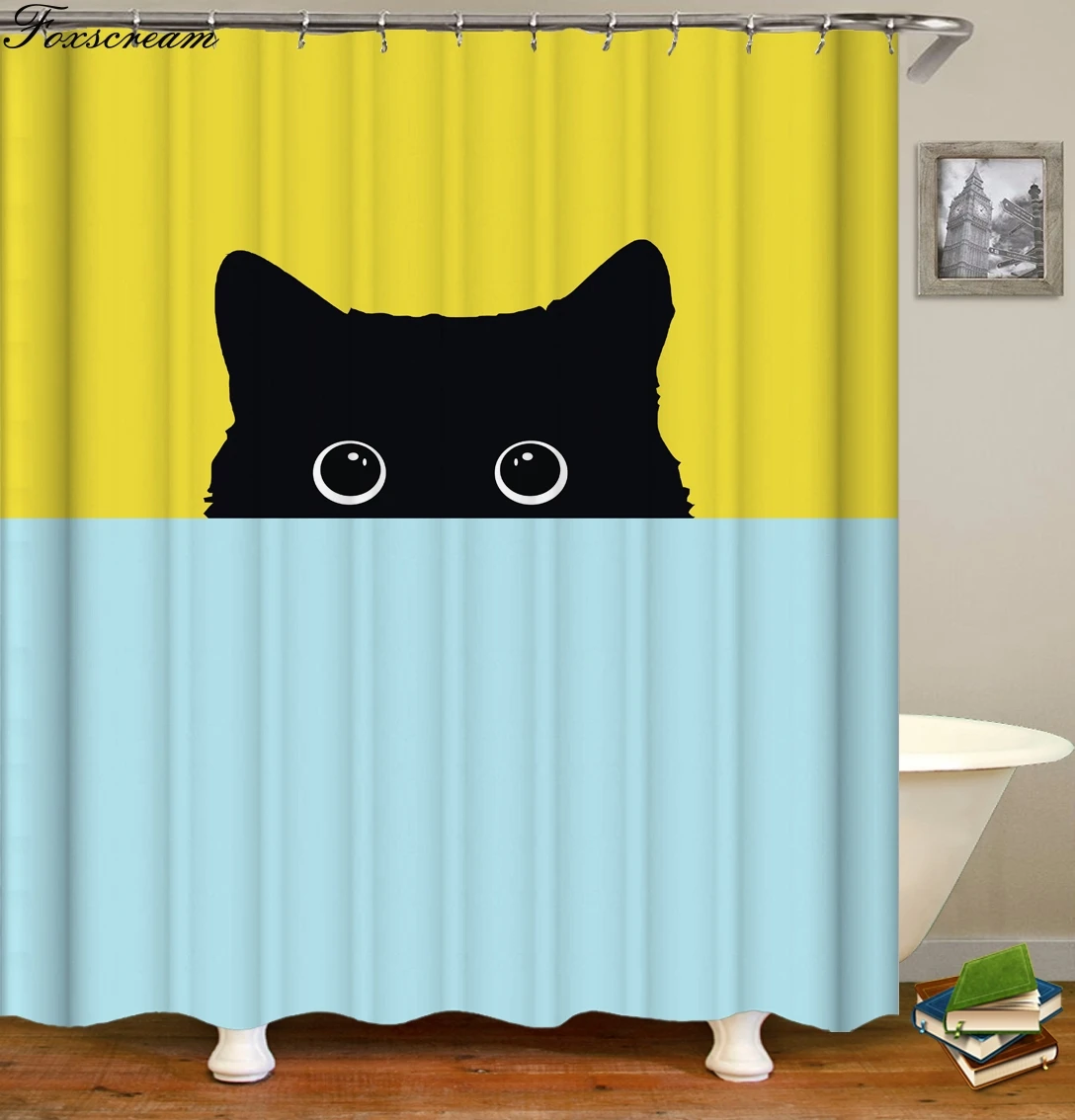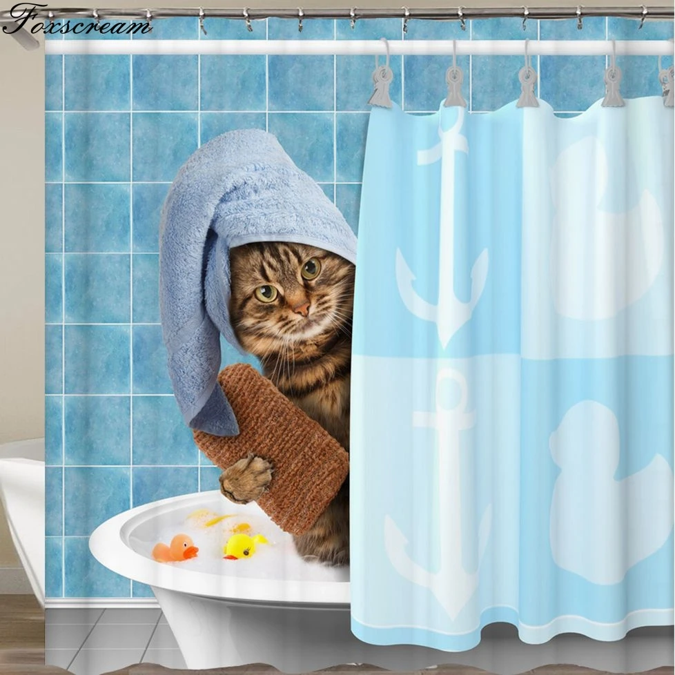 Занавеска для душа в виде кошки, из полиэстера, с капюшоном