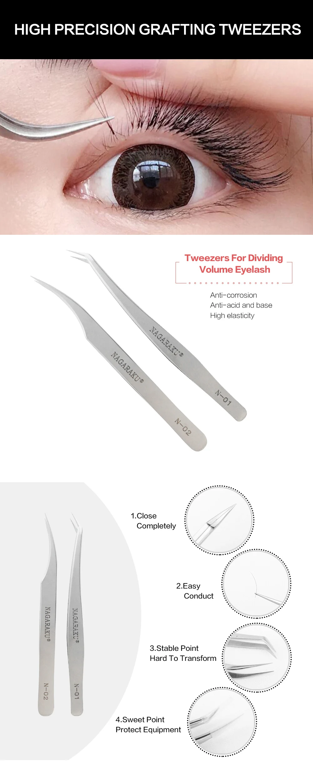Набор для наращивания ресниц NAGARAKU, профессиональный Профессиональный пинцет для разделения объема ресниц, 2 шт.