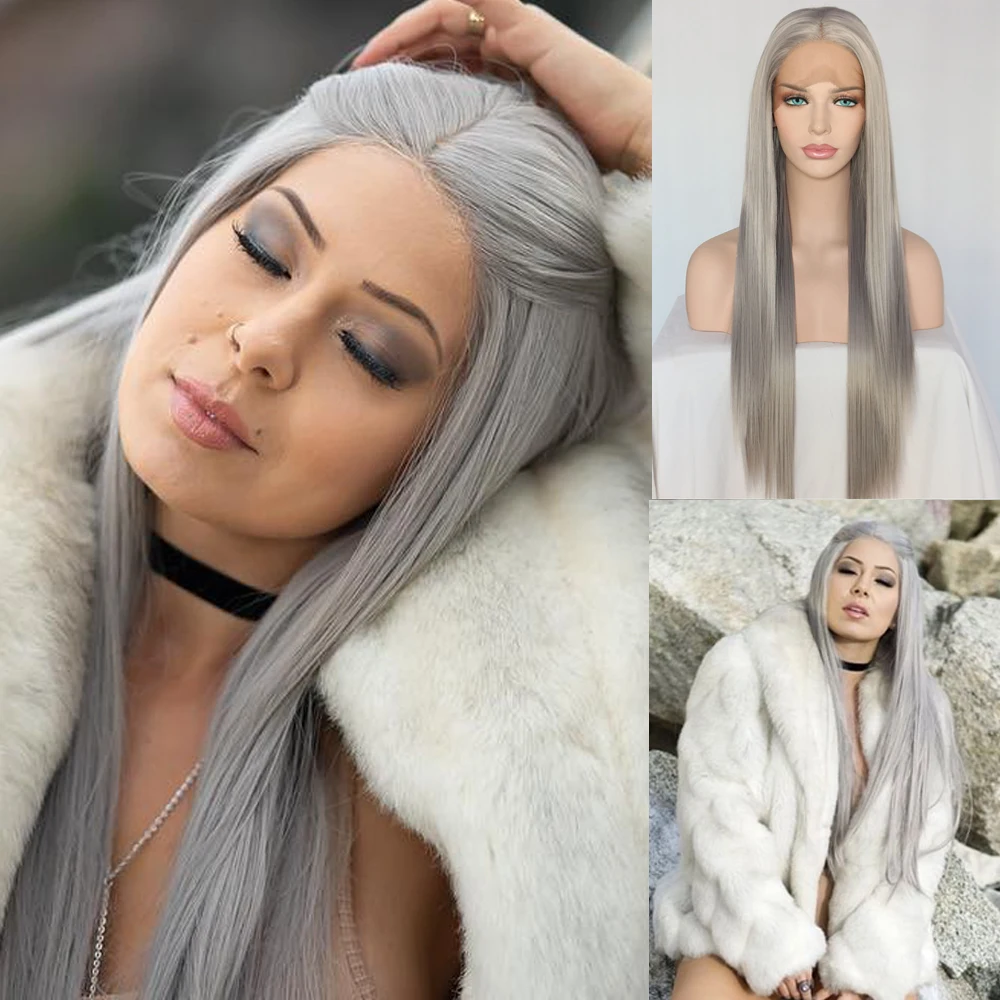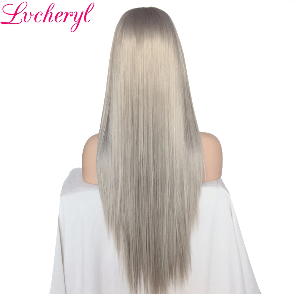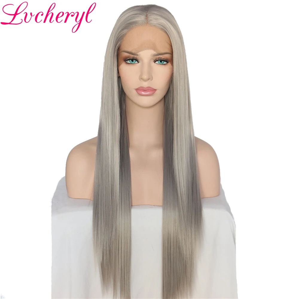 Lvcheryl серебристо-серый цвет синтетические кружевные передние парики ручной работы натуральные длинные шелковистые прямые Термостойкие волосы