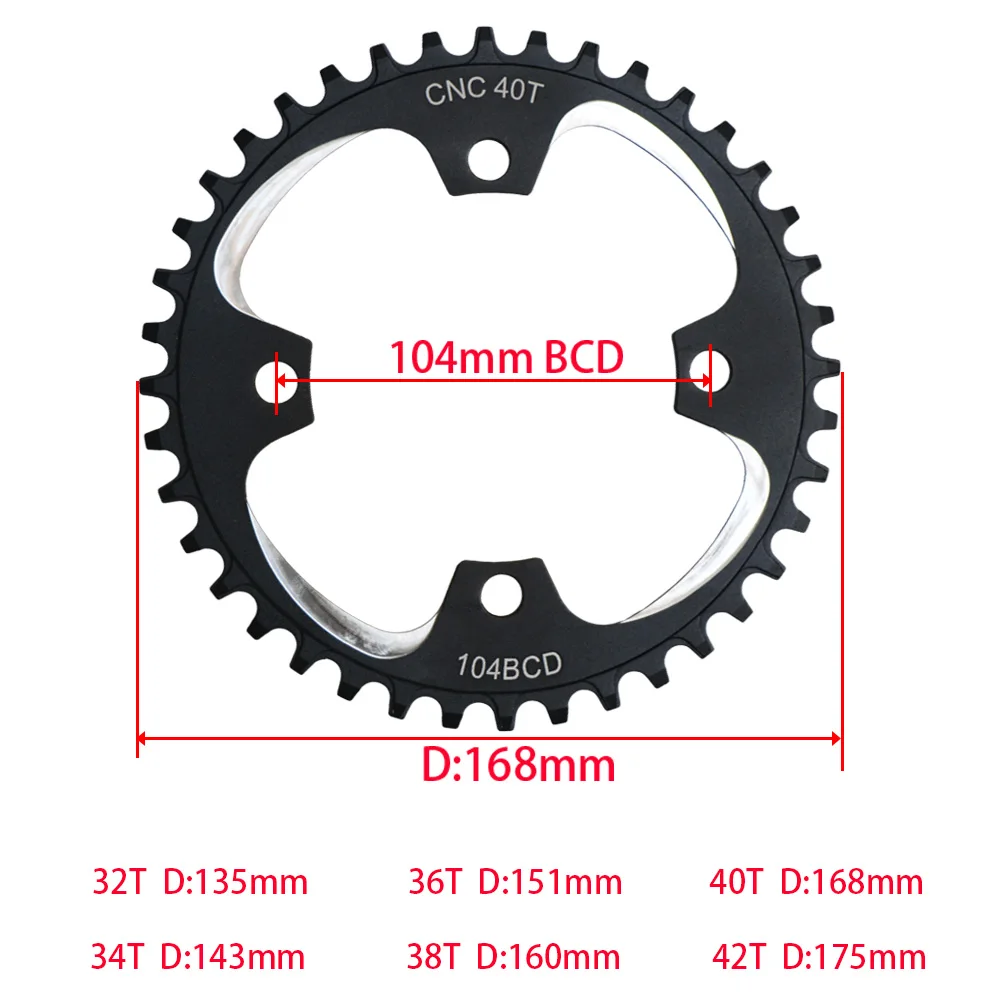 Размер: 32T/34T/36T/38T/40T/42T BCD = 104 мм