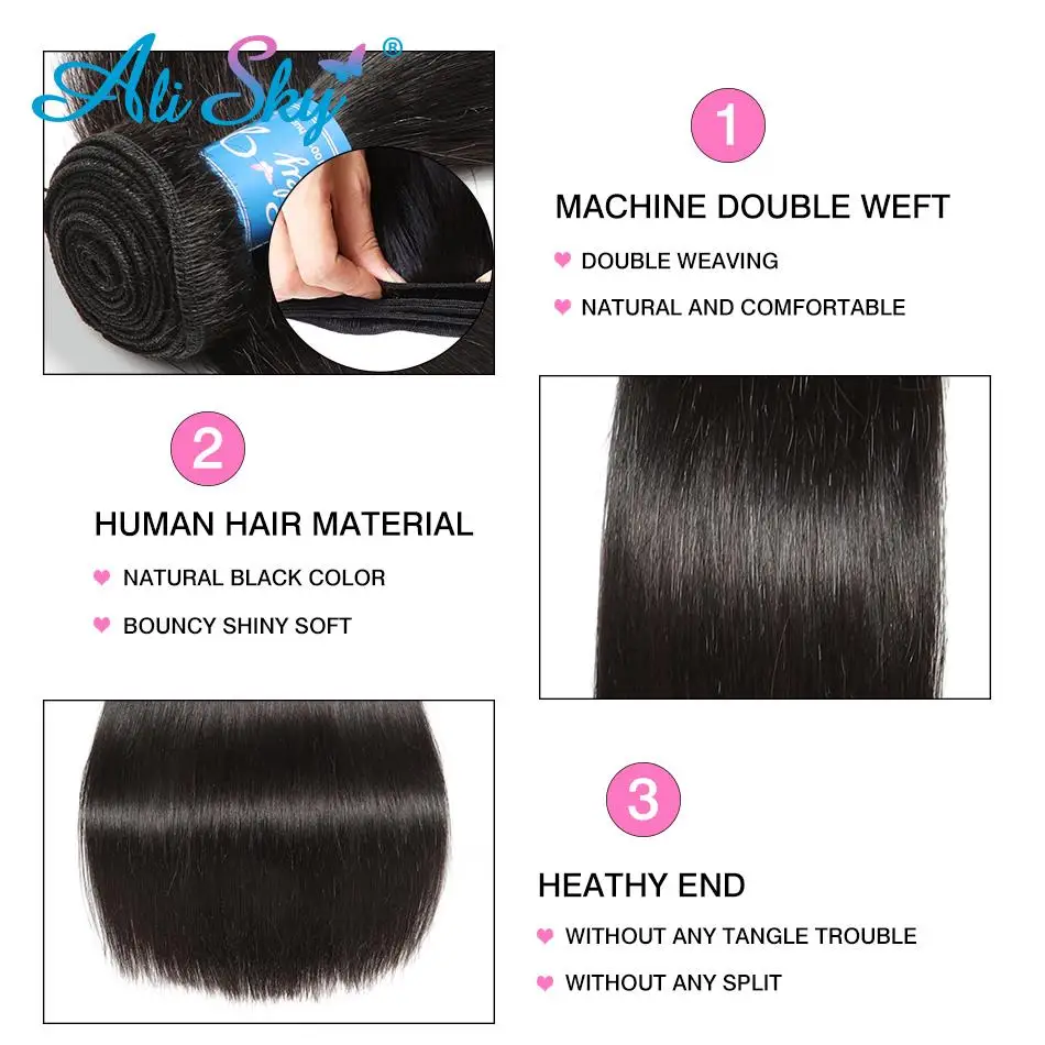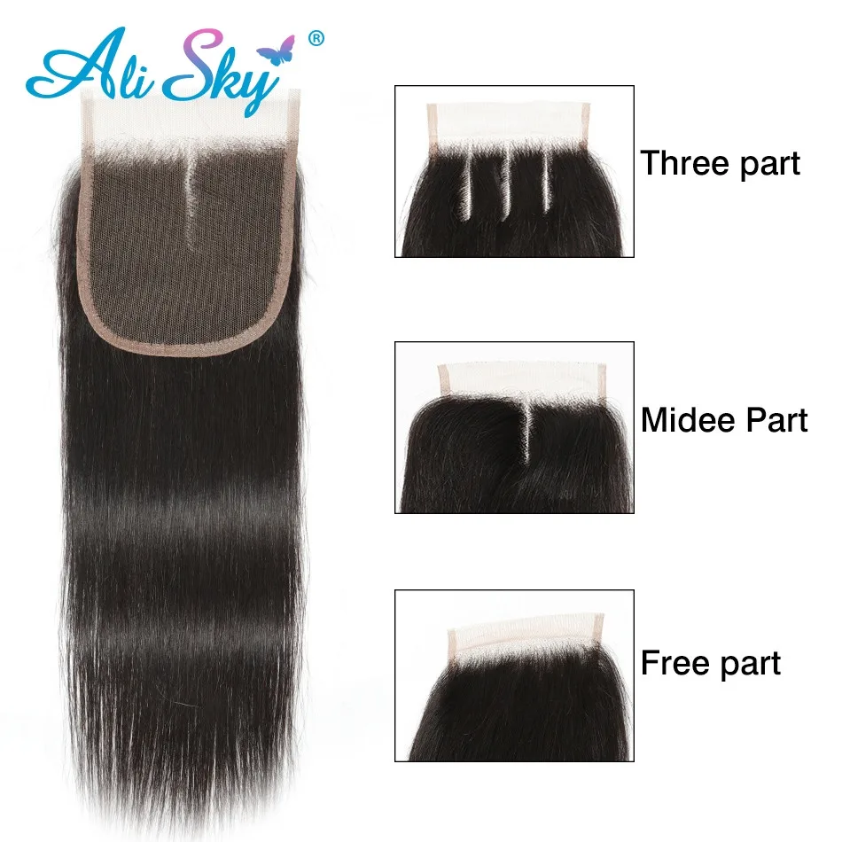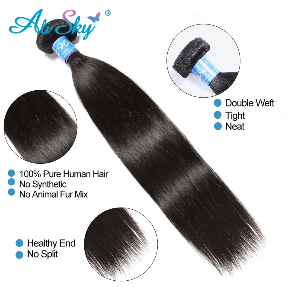 Пряди прямых волос Alisky Bone с застежкой, бразильские волосы для наращивания, пряди человеческих волос Реми с фронтальной застежкой