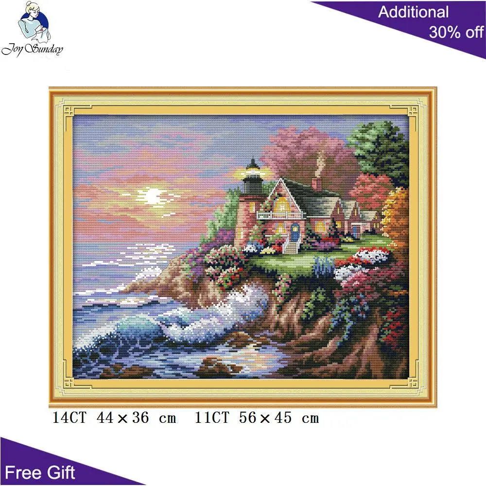 Joy Sunday море светлая вышивка F682(1) 14CT11CT Счетный и штампованный домашний Декор Морской Маяк наборы для вышивки крестиком