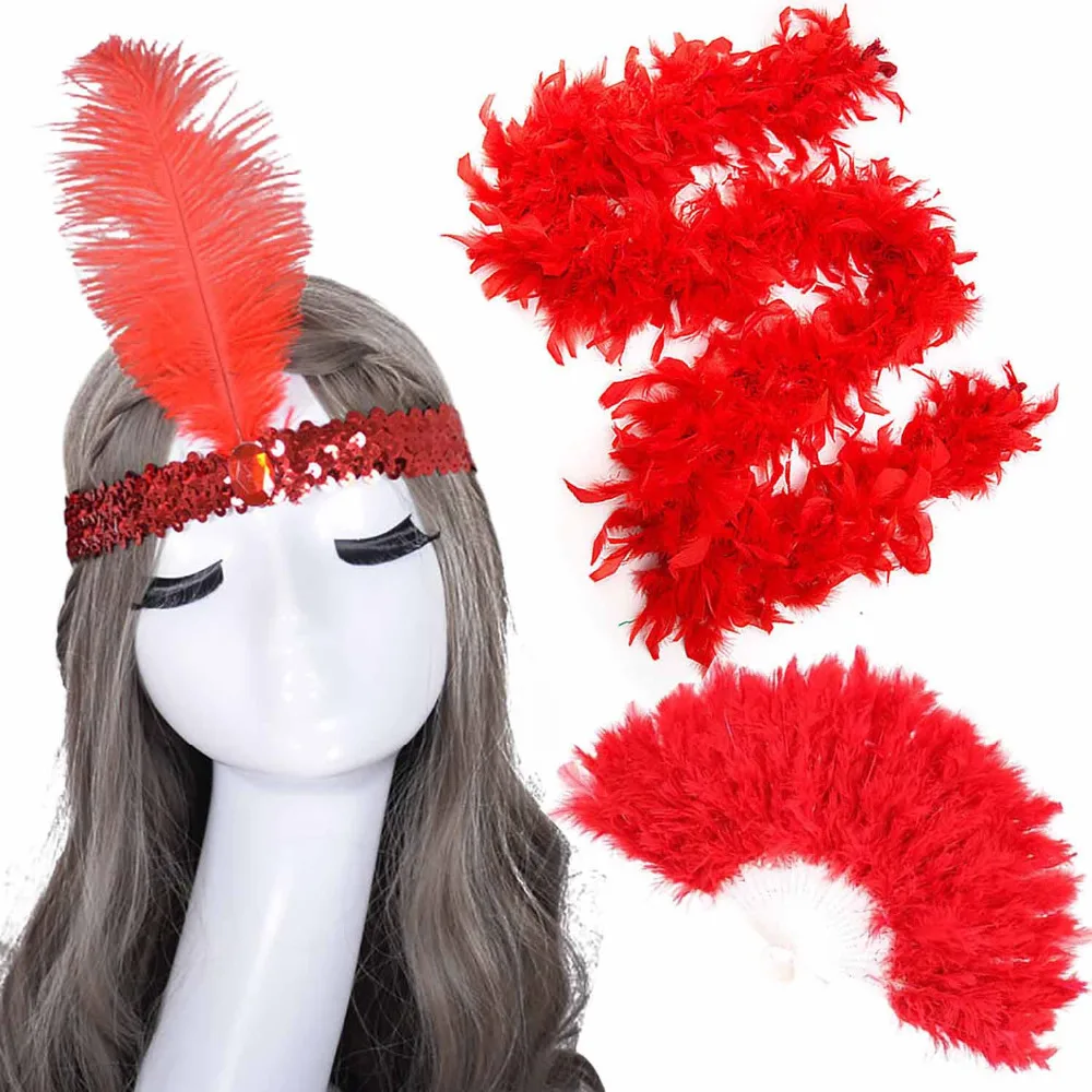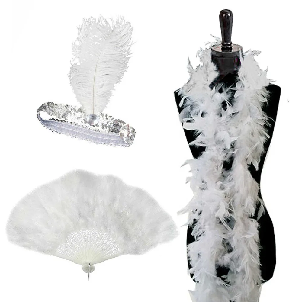 Package IncludesHeadband, Feather Boa, Hand Fan