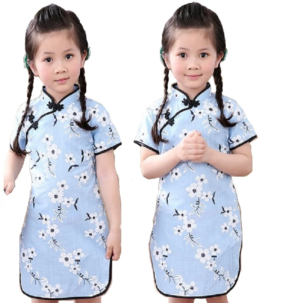 Платье в китайском стиле Ципао для маленьких девочек, модное льняное традиционное детское платье с розами, новогоднее