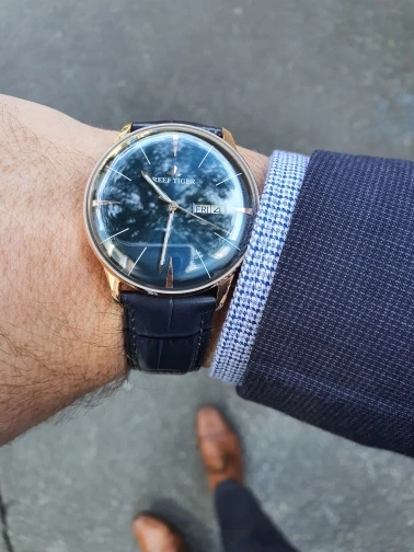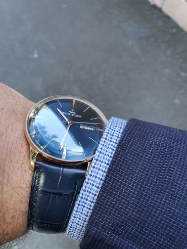Новый Риф ТигрRT платье часы для Для мужчин синий кожаный ремешок в...