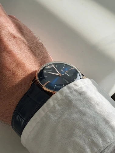 Мужские стальные автоматические часы и кожаные ремни с синим циферб...