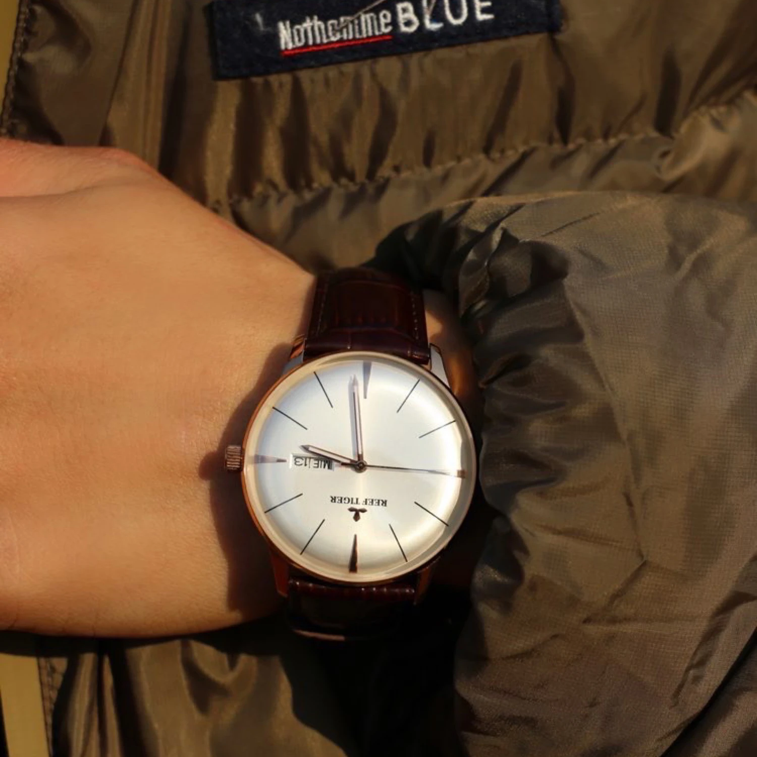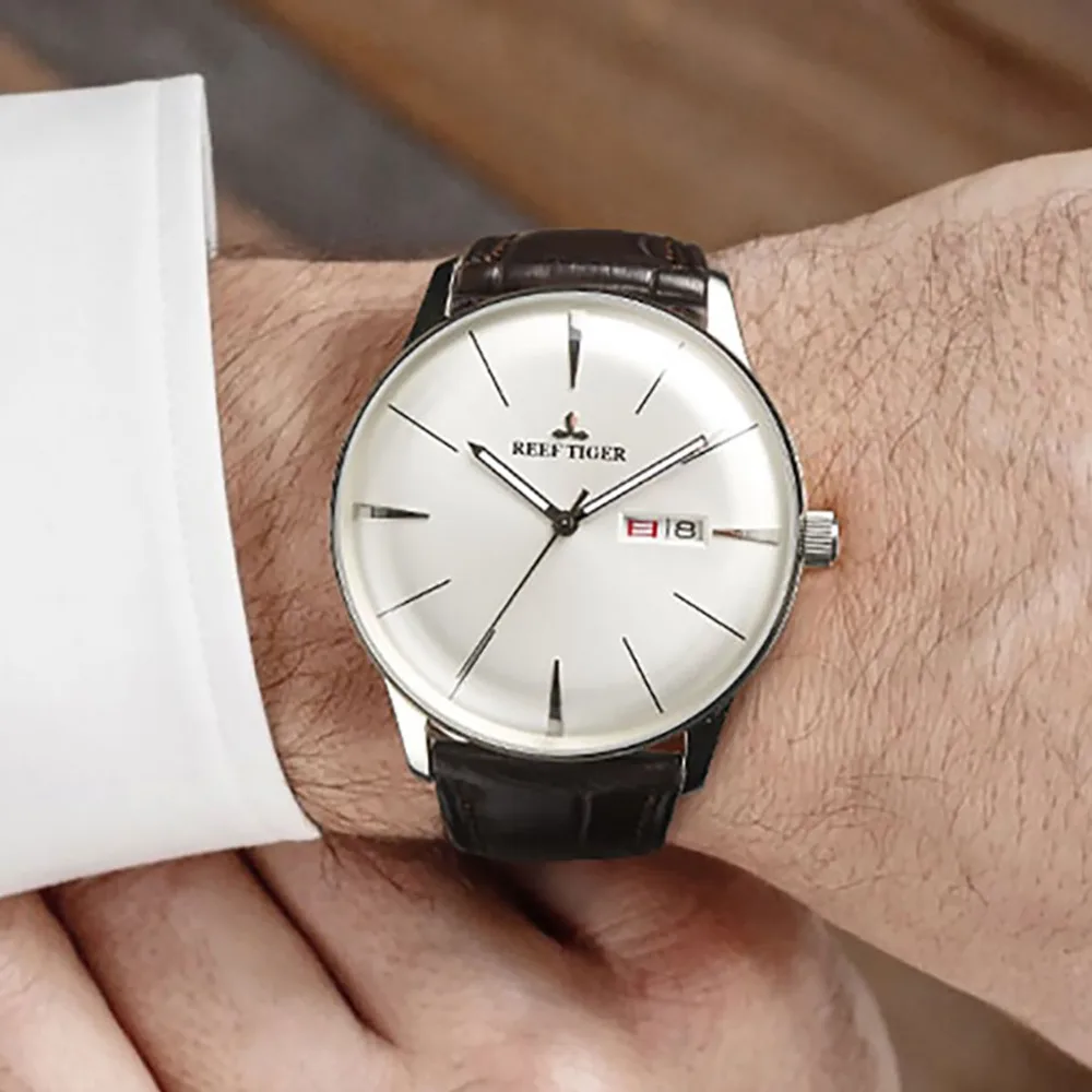 Риф ТигрRT классические повседневные часы выпуклая линза Натуральная кожа Ремешок стальной автоматический часы с датой день RGA8238
