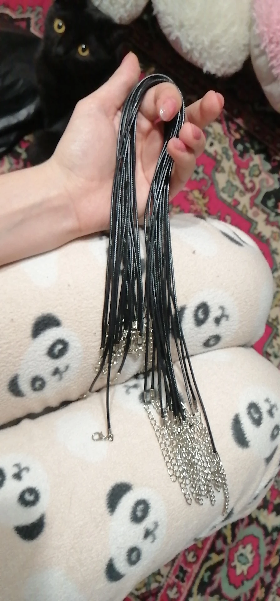 Шнурочки хорошие, кожаные. Замочки все рабочие, ровно 20 штук, полная длина изделия 50 см. С продавцом не общалась. В Моск. обл. заказ пришел ровно за месяц. Спасибо продавцу и процветания магазину!!!