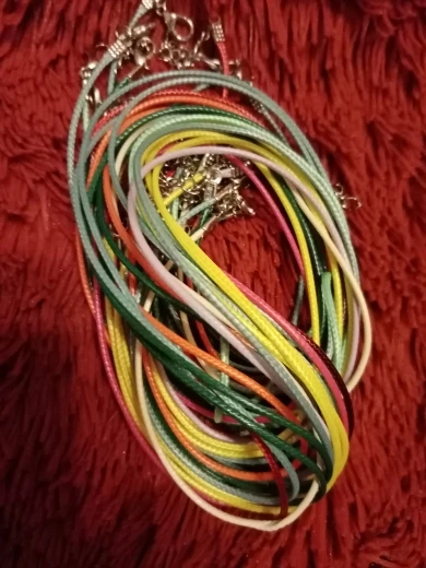 Верёвочки соответствуют фото, плотные плетёные, конечно ни о какой коже там даже и речи нет, как написано в описании)) Цвета яркие, красивые. Замочки по качеству слабоваты все же, один сразу же сломался при попытке его открыть,насколько остальных хватит, не знаю. В Красноярск пришло за 2 месяца, но трек не отслеживался на этот раз почему-то. В общем, за такую цену пойдёт, спасибо продавцу)