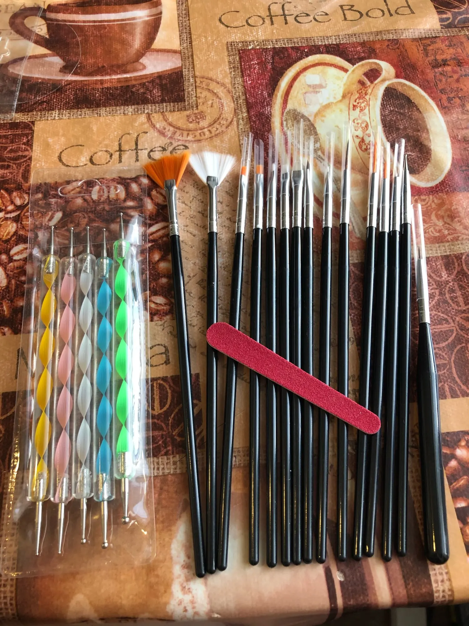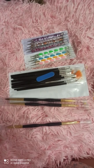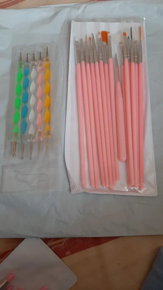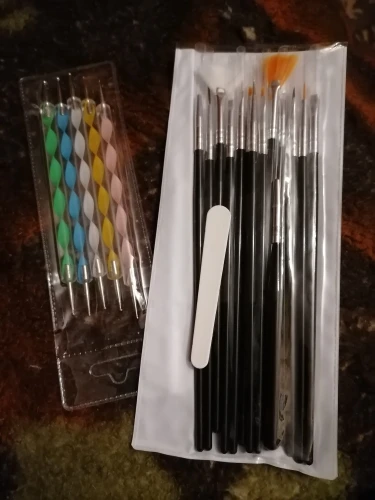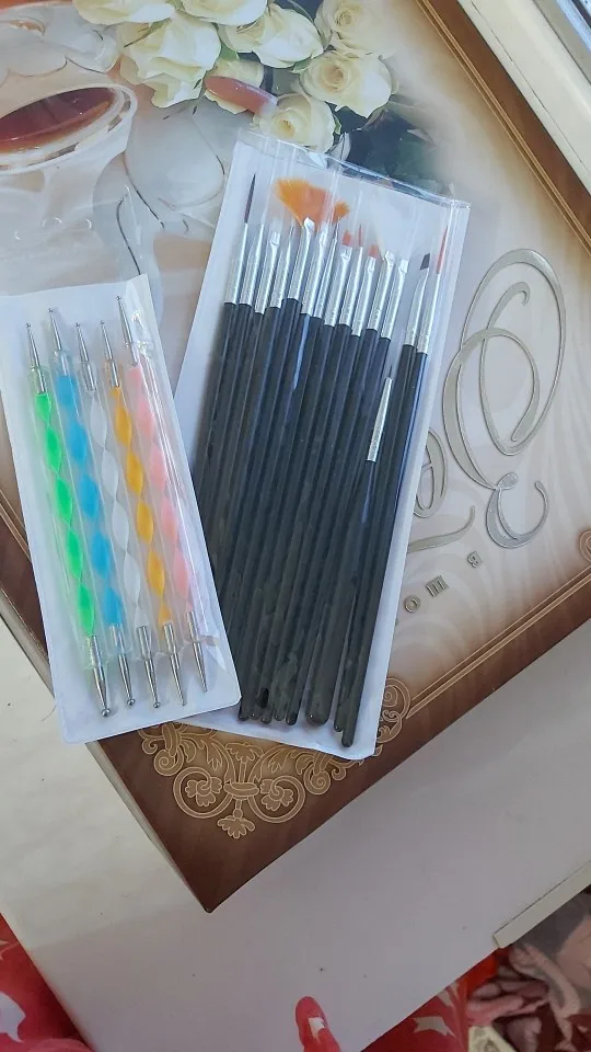B. 15 шт набор кистей для рисования:B.1.Новое и высокое качествоB.2.Используйте для ваших натуральных или накладных ногтейB.3.15 шт. ручек и кистей для дизайна и рисованияB.4.Подходит для смешивания, загрузки сбоку и попадания в узкие зоныB.5.Простота в обращении, идеально подходит для профессионального и домашнего использованияB.6.Подходит для профессионального использования или домашнего использованияB.7.Идеальный инструмент для женщин, которые любят макияжB.8.Состояние: новоеB.9.Кол-во: 15 шт.B.10.Цвет: как показано на фотографииC. Посылка включает в себя:С. 1.3 x инструменты для рисованияС. 2.7 x инструменты для рисования (дополнительное использование геля для отверждения ногтей)С. 3.2 x вкладышиС. 4.1 x инструмент для расчисткиС. 5.2 x веерные кисти для эффекта нейл-арта (дополнительное использование теней для век)C.6.1x5 шт 2-Way инструмент для дизайна ногтей Dotting Pen