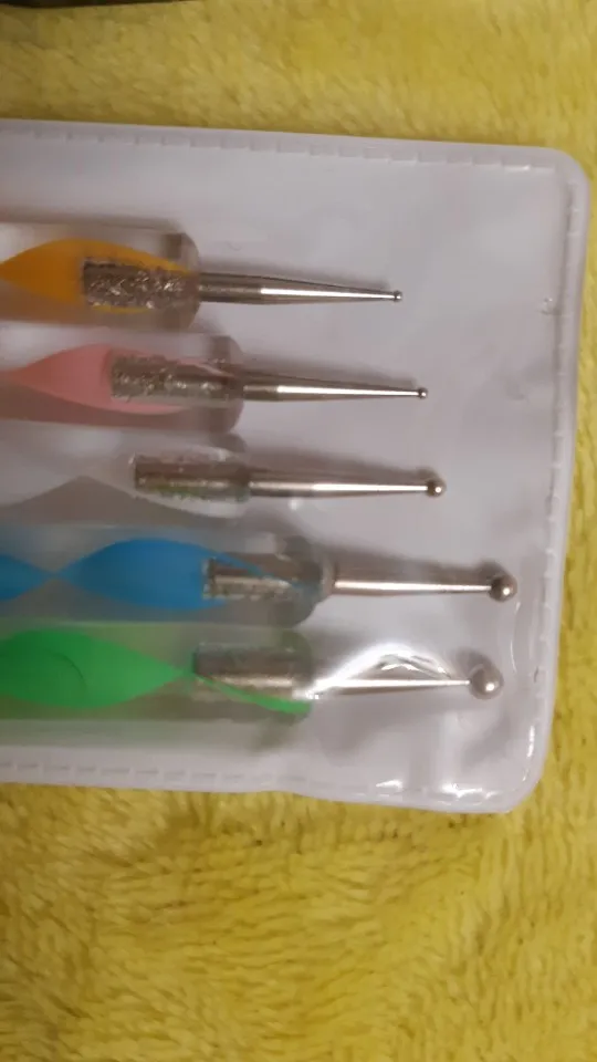 А. 5 шт. двухсторонние инструменты для расчистки:A.1.Это 5 лаков для ногтей с 2 различными концами для разных мраморных желанийA.2.Один конец с большим мячом и другой конец с меньшимA.3.Идеально подходит для изящных ногтейA.4.Подходит для профессионального использования или домашнего использованияA.5.Идеальный инструмент для женщин, которые любят макияжA.6.Состояние: новоеA.7.Длина: дюйма/125 смA.8.Цвет: случайный цвет