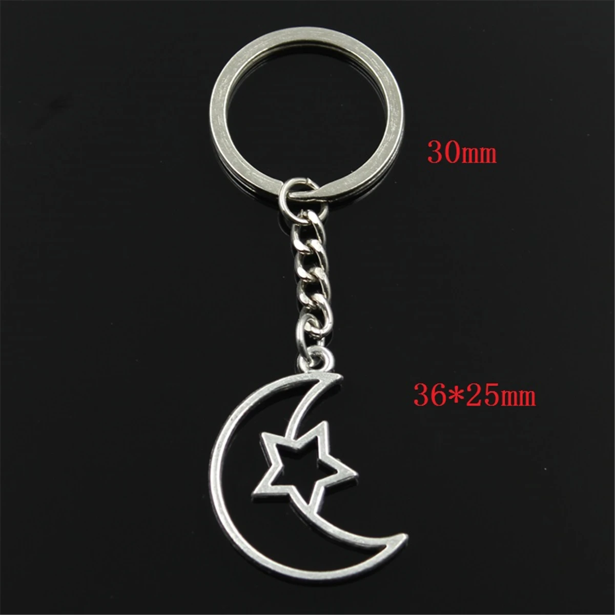 Новинка, модный мужской брелок 30 мм, металлический держатель сделай сам, винтажная цепочка с полыми лунами и звездами, 36x25 мм, серебристый цвет, кулон, подарок