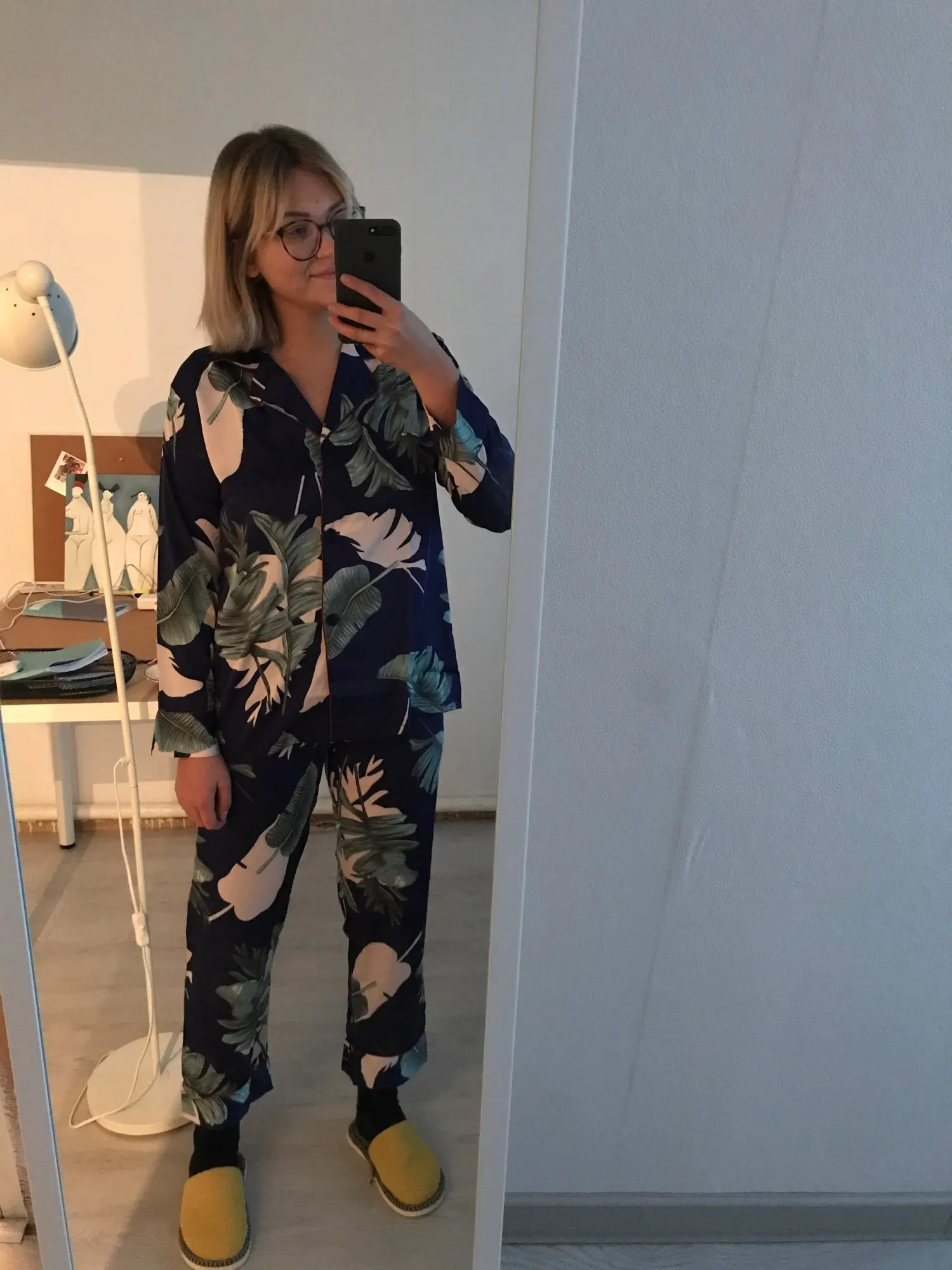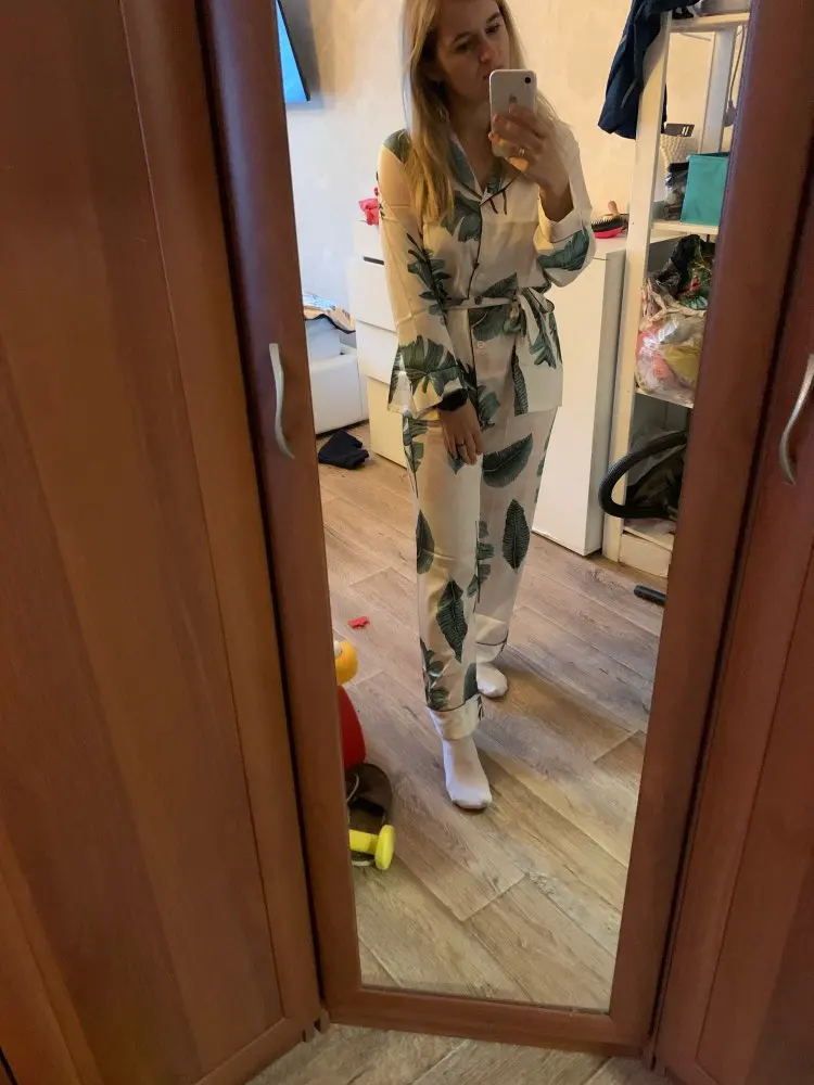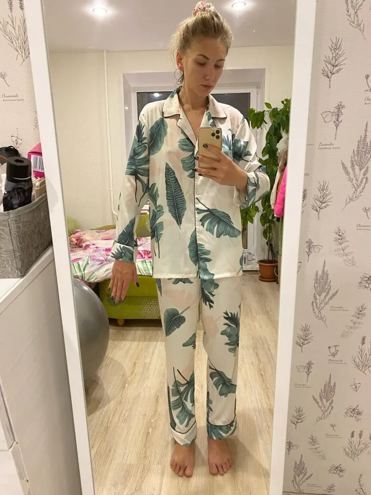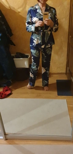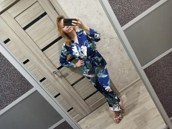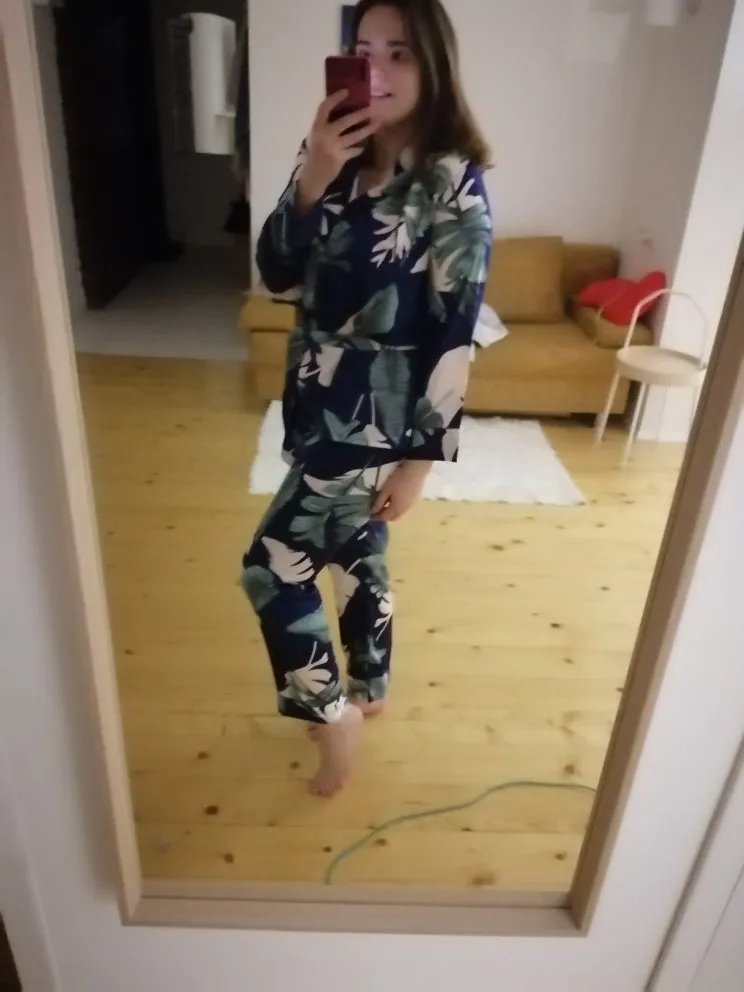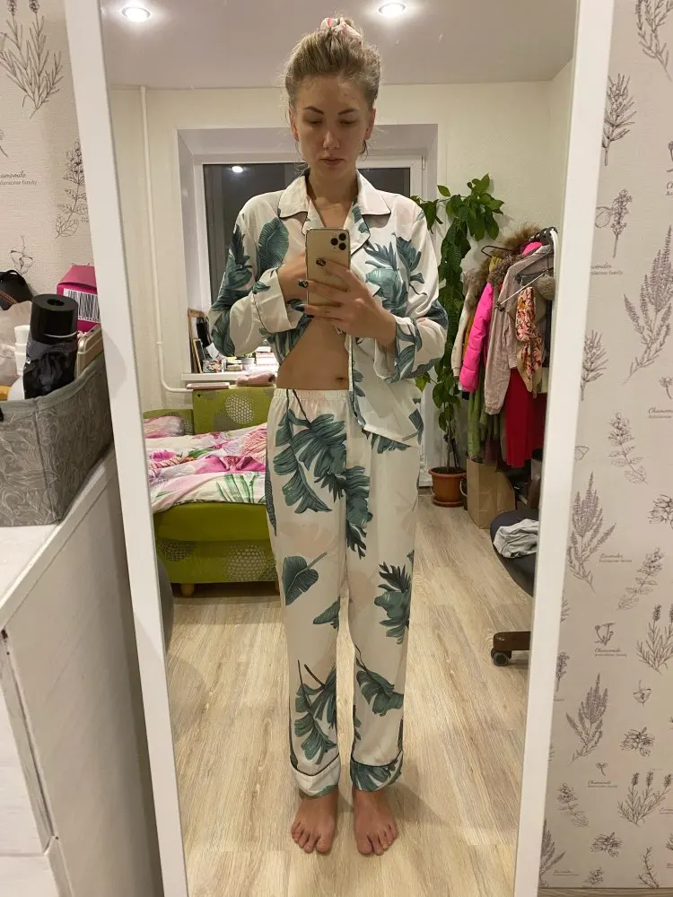 Очень хорошая пижама! Дошла быстро в постамат за 12 дней. На мой рост 167 и параметры 84-66-92 заказала XL. Все село идеально. Материал приятный, лёгкий, нитки не торчат, прошито аккуратно. Не садится, не линяет после стирки. Very nice pajama suit. I got it to the checkpoint quickly, in 12 days. For my height 167 and parameters 84-66-92 I ordered xl. The fabric is pleasant, light, threads don't stick out, neatly stitched. Doesn't shrink, doesn't fade after washing.