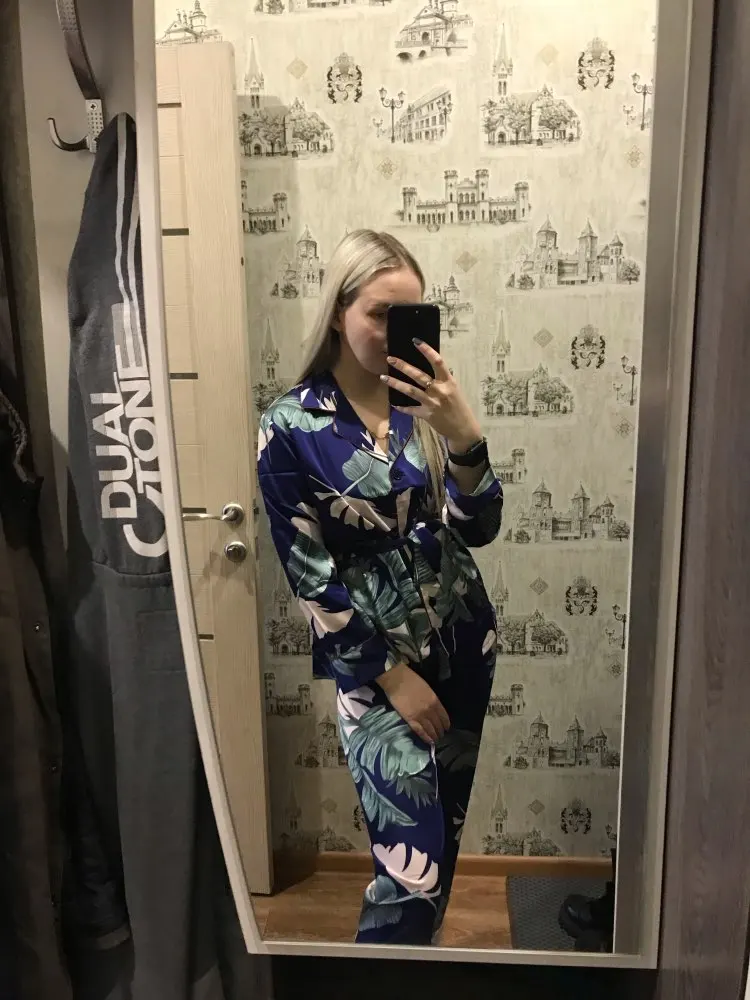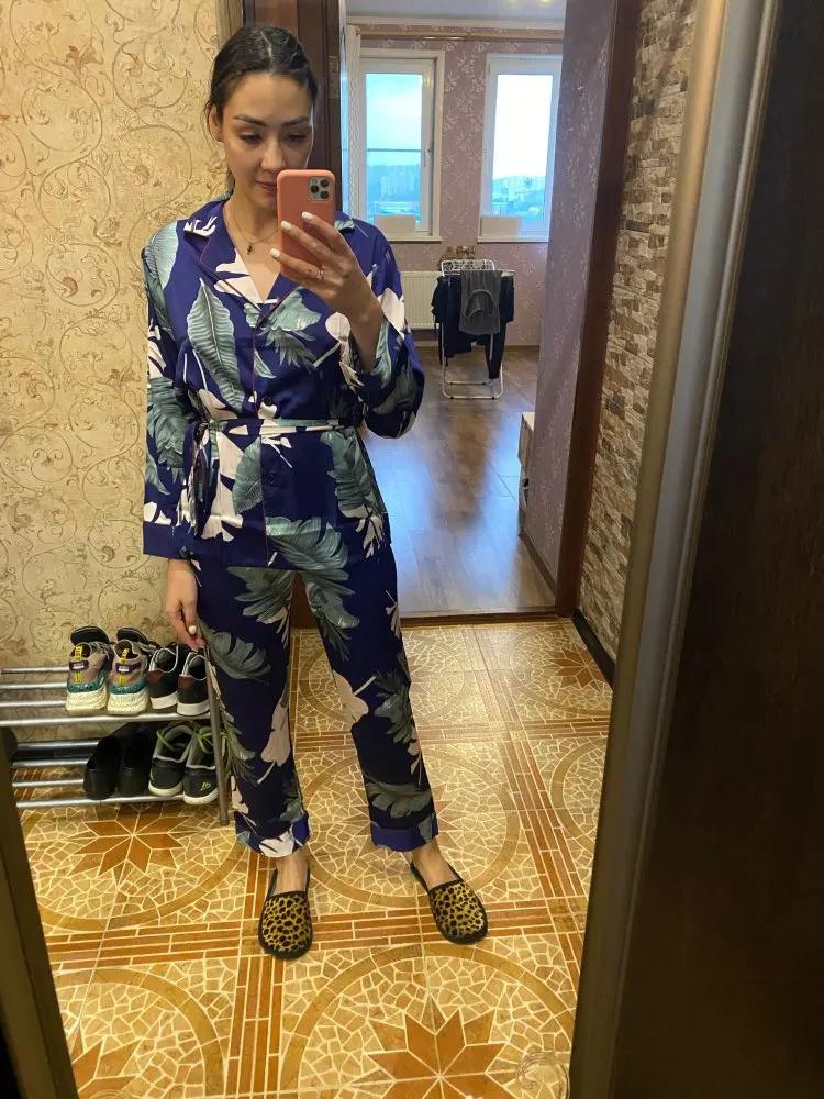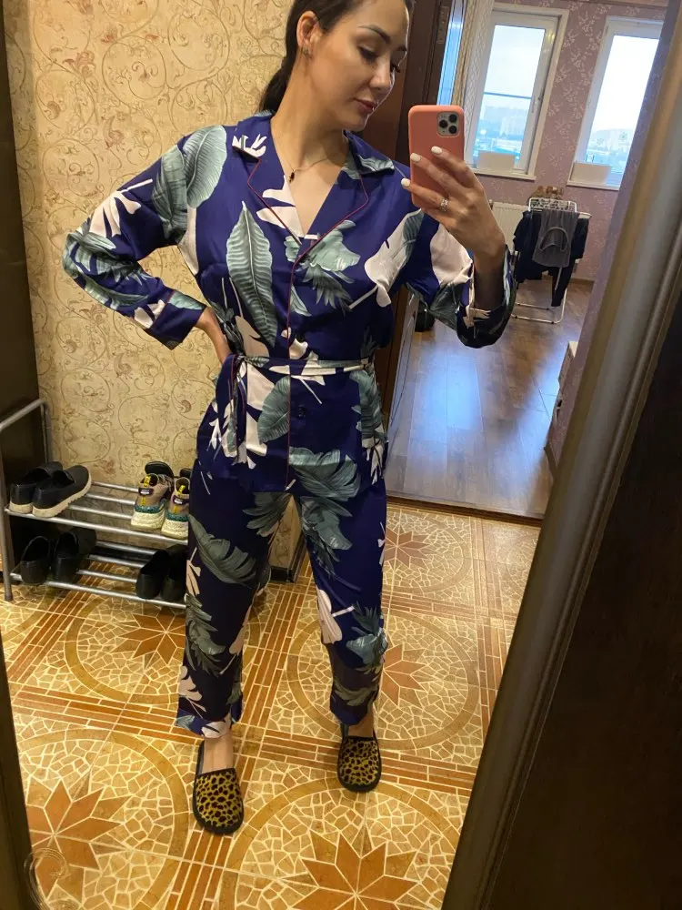 девочки пижама бомба !!! я очень довольна ,тонкий мягкий "мокрый шелк" первый раз после стирки нужно конечно антистатиком побрызгать ,чтоб не липла к телу! Пришла до СПб лен.обл Всеволожск за 3 недели, быстро ! отслеживала. Цвет и рисунок полностью соответствует! мои параметры : рост 165, вес 60 кг грудь 92 талия 77 бедра 96 Моя фигура больше к прямоугольнику, ношу основной размер 44 ( М) взяла пижаму XL , села прям идеально! получается маломерит на 2 размера учитывайте это . штаны не короткие на мой рост идеально и резинка на штанах тоже и сидят как надо чуть свободны ,они не должны быть в обтяг иначе не сядете в них и ноги не согнете ! Ткань почти не растягивается ,это не стрейч, так что берите чтоб было на свободу движения длина кофты и рукавов тоже на мне идеально подошло. Мой вердикт брать на 2 размера больше вашего, а если у вас округлые бедра то можно и на 3 размера