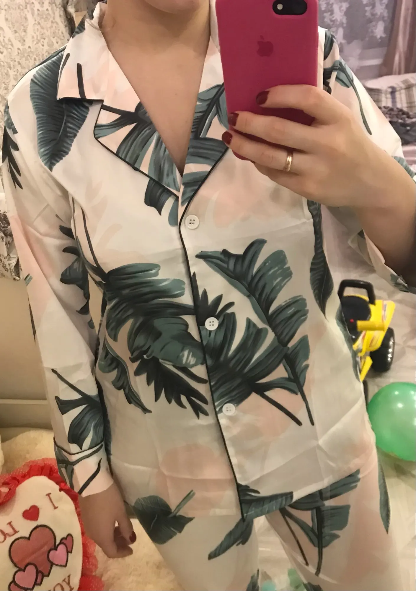 Очень красивый и качественный костюм-пижама. Ткань легкая и приятная к телу. Заказала XL. Рубашка идеально села на мой обычный размер М (грудь 95 см), а вот брюки на размер L (бёдра 100 см) впритык, смотрится плохо.