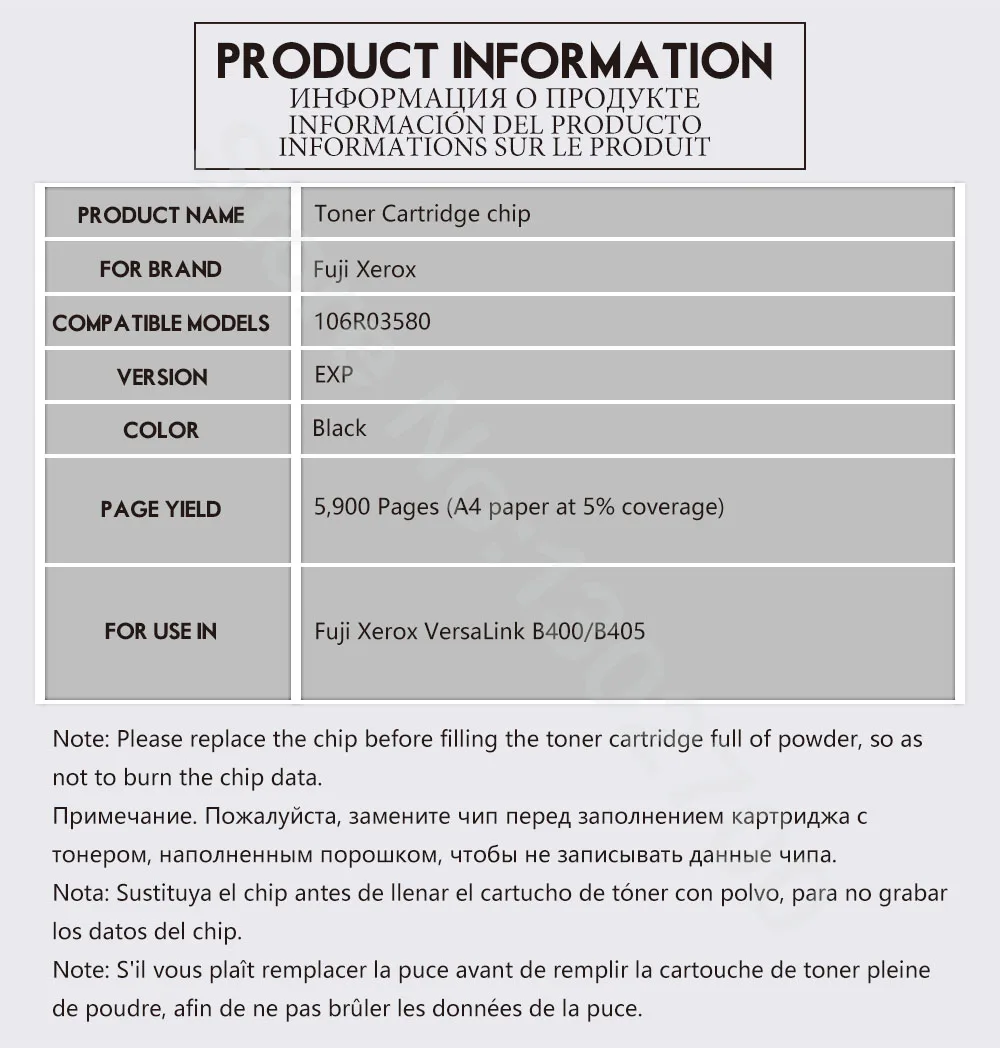 Чип для картриджа с тонером высокой емкости 106R03480 106R03690 106...