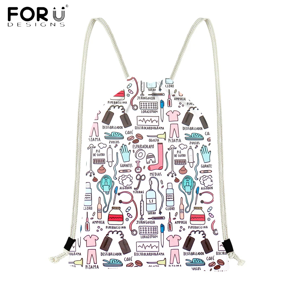 Рюкзак на шнурке FORUDESIGNS для женщин, Модный складной тканевый ранец для медсестер, маленькая сумка для школьниц