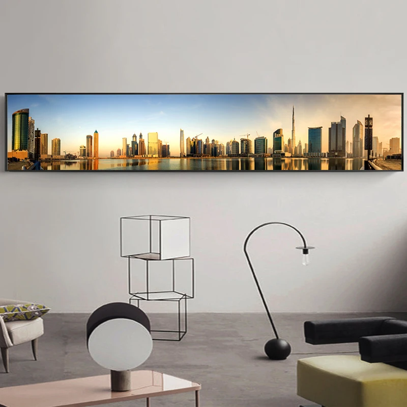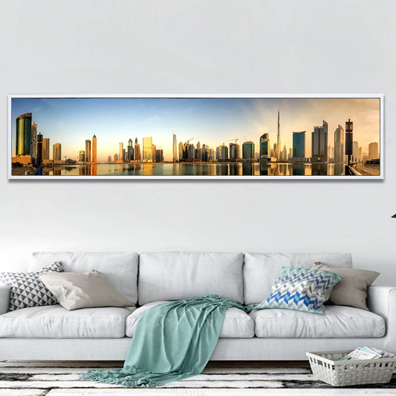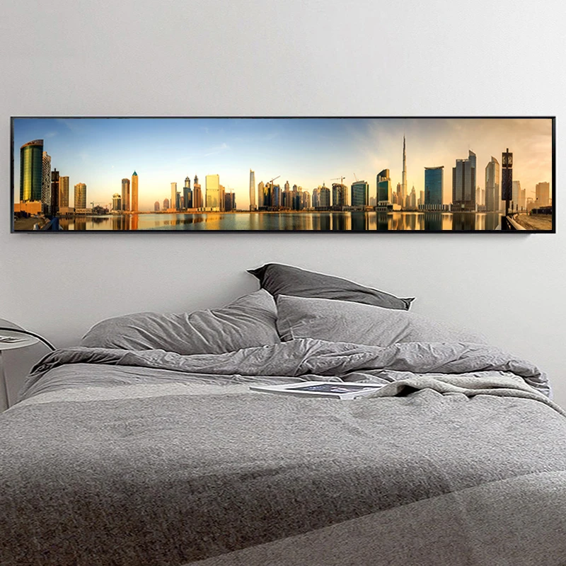 Большая Современная городская фотография, картина с панорамной картиной, настенное художественное полотно в Дубае для спальни, гостиной, украшение большого размера