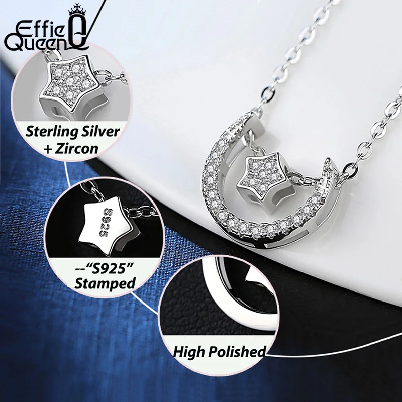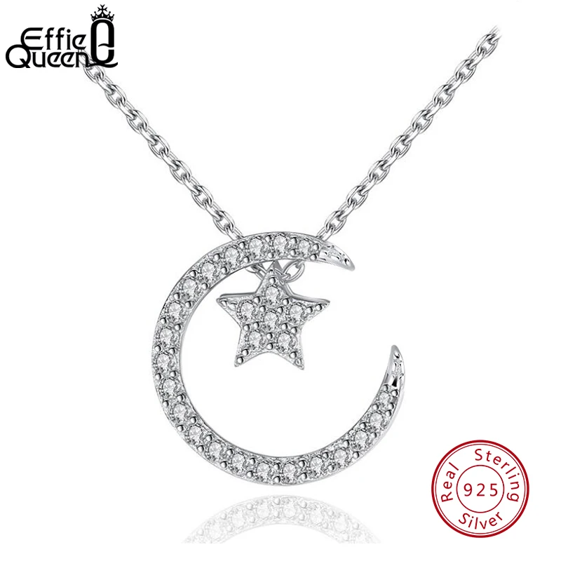 Эффектные ожерелья Effie Queen Moon & Star, стерлинговые серебряные подвески на цепочку, новые модные ювелирные изделия, лучший подарок другу BN06