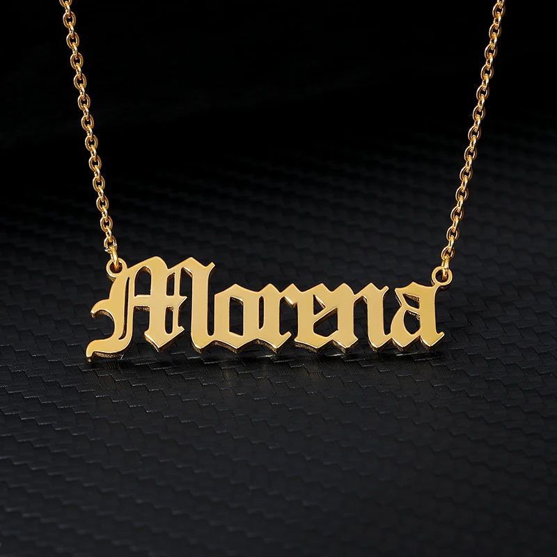 Персонализированные Старый английский название шрифта ожерелье для женщин на заказ нержавеющая сталь Подвеска для золотой цепочки чокер ювелирные изделия подарок Bijoux Femme