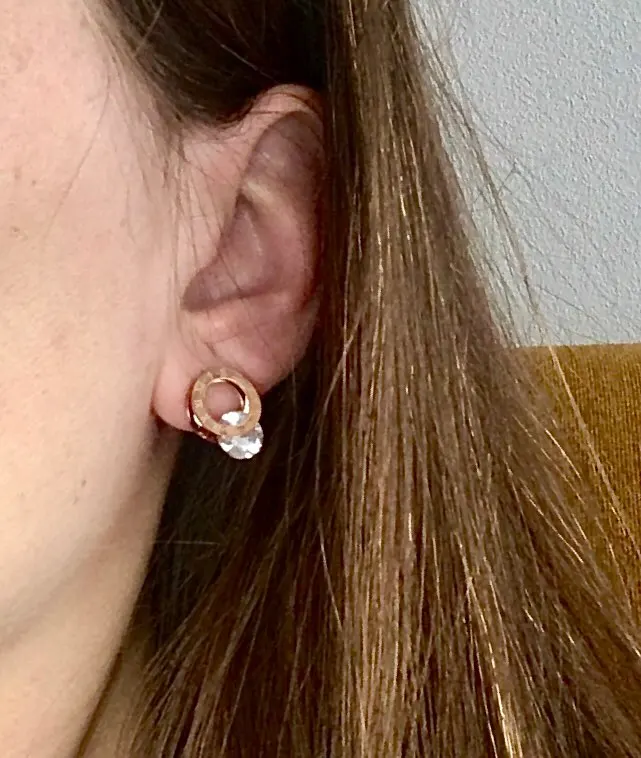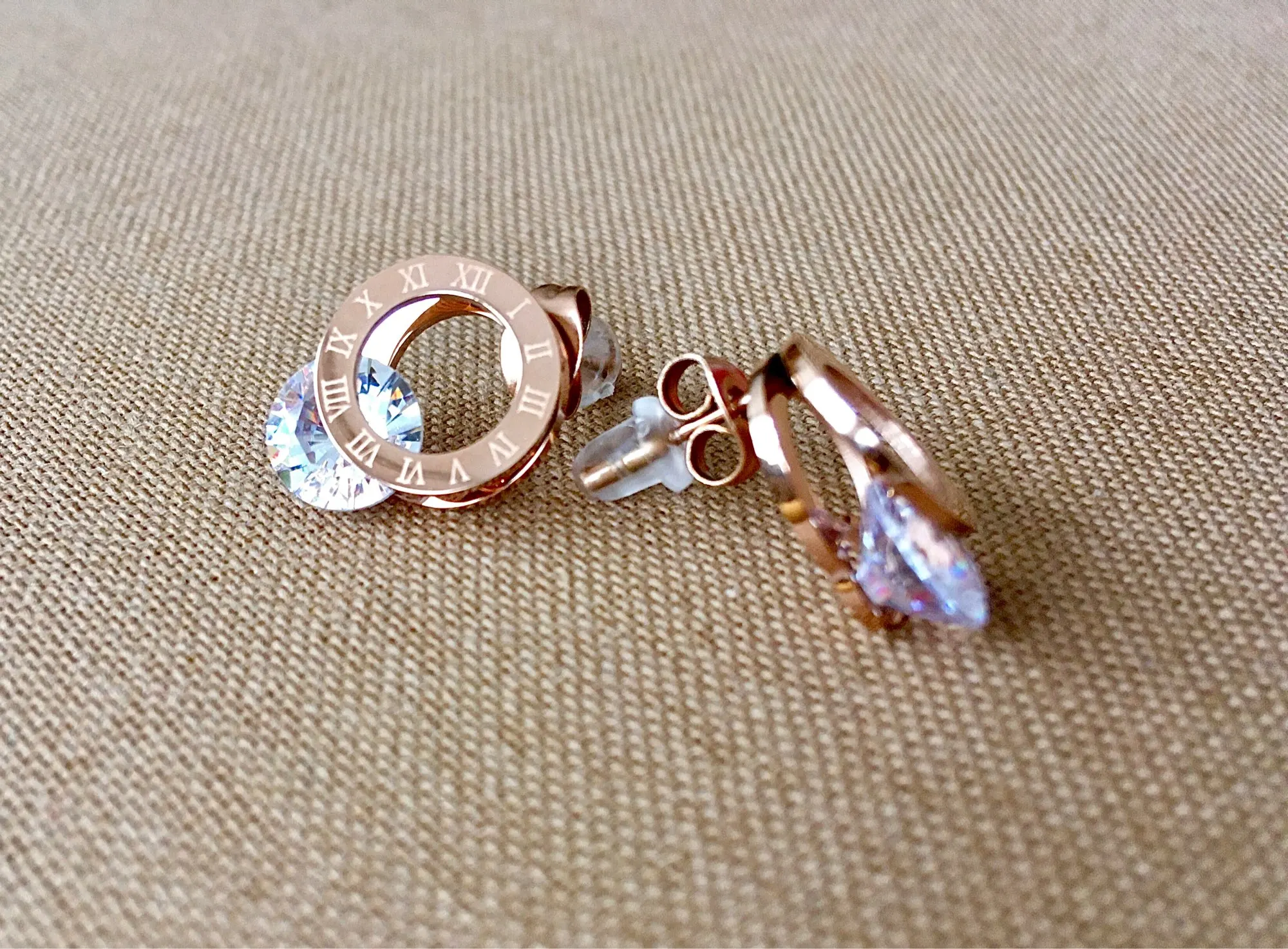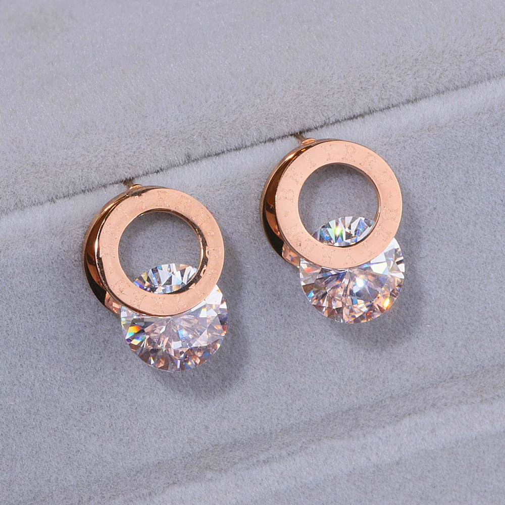 Женские серьги-гвоздики из нержавеющей стали, с цирконием AAA, розовое золото, WX028