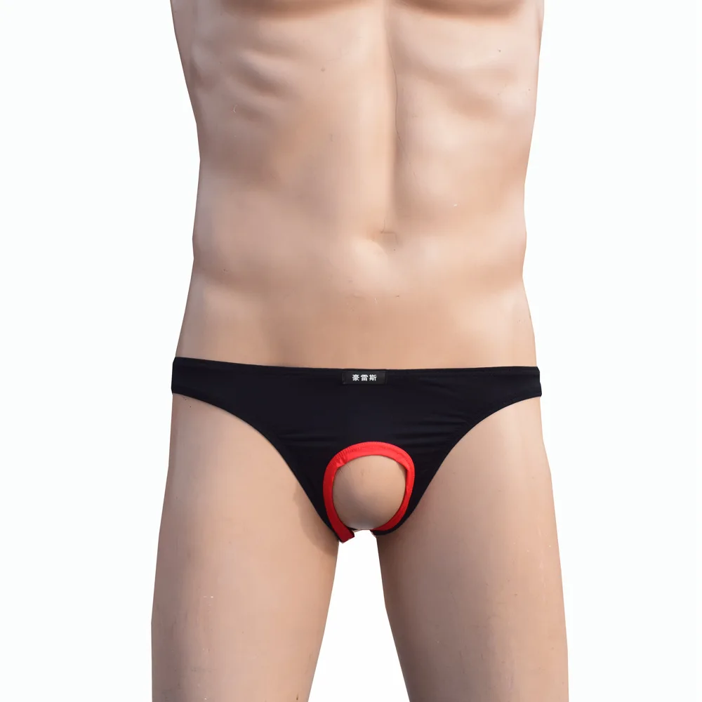 Эротические сексуальные мужские плавки без косточек с открытым отверстием, шелковые геев, нижнее белье для пар, сексуальные трусики, женское нижнее белье, смешной черный цвет
