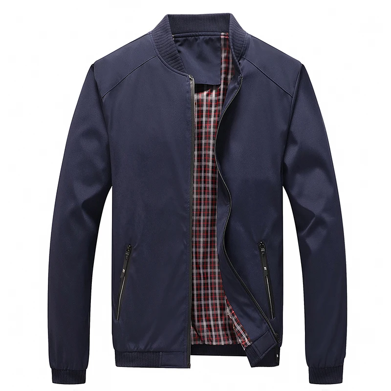 Куртка-бомбер мужская однотонная, со стоячим воротником
