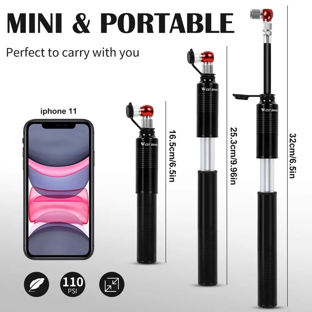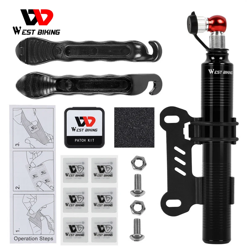 WEST BIKING Портативный велосипед насос Велоспорт велосипед шины рычаг патч, набор инструментов для ремонта ультралегкий, нержавеющий ниппель камеры высокого давления к клапану Шредера MTB дорожный велосипедный ручной насос