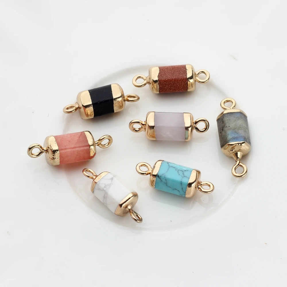 2 шт.лот подвески из натурального камня цилиндрические бусины ручной работы с двойным отверстием коннекторы подвески для ожерелья DIY ювелирные аксессуары